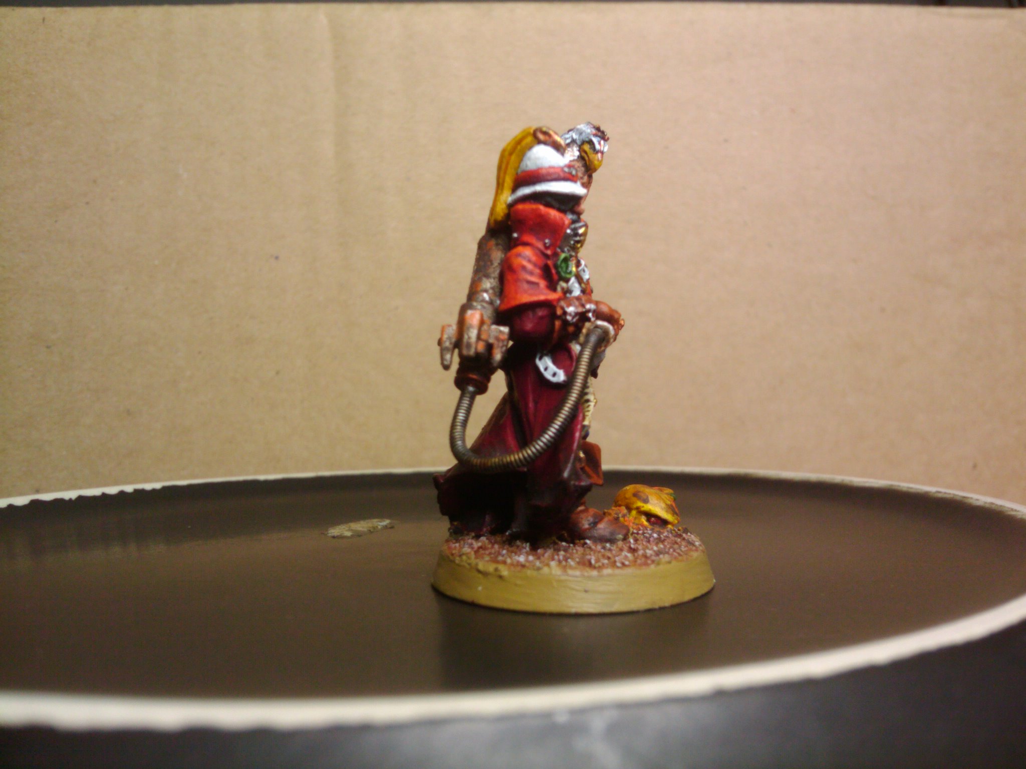 Next up we have a Priest. He’s an old Necromunda model with very little conversion work but a bit more JB influence on the painting. This was modelled to go with the previous codex, (i.e. before Priests were cool), hence the Eviscerator & shotgun. This is no longer a valid load-out in the new ‘dex, which is a shame, but I still love the model:
