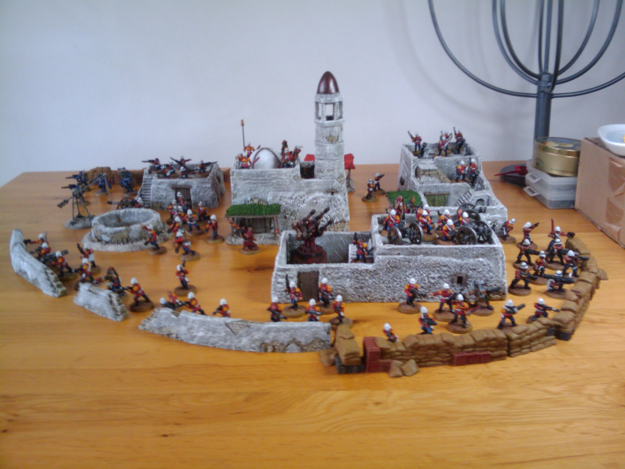 Right. Details. Well, it all came together in one big box, (good), and was really well packaged, (also good). Once opened, I found that the quality is excellent – the buildings are made out of really heavy-duty stuff that feels like it will take a proper thumping. The texturing is crisp, with loads of nice little details to find, and the painting is simple, well executed and effective. Even the fiddly bits like the water dipper thing (called a ‘nodding donkey’ apparently… who knew?) are nicely finished and feel durable. The canopies are a nice touch, but more ‘historical’ looking I feel, whereas I want more of a Tatooine vibe – but hey, they’re separate pieces, so I’ll just leave them out. It would also be nice if you could buy the wall sections on their own if you wanted to extend the perimeter a bit, but they only come with the well. Hey-ho, sand bags will do just fine. Most excitingly, this set has plenty of scope for conversion – the doors could easily be made metal for example, or bits of odd high tech (or steampunk) machinery added to the roofs to take it into the realms of sci-fi, victorian sci-fi, whatev’s your bag really! You can paint it if you want to, hell, you could even go all spikes, skulls, spehss mehreen statues and aquilas if you really wanted to!