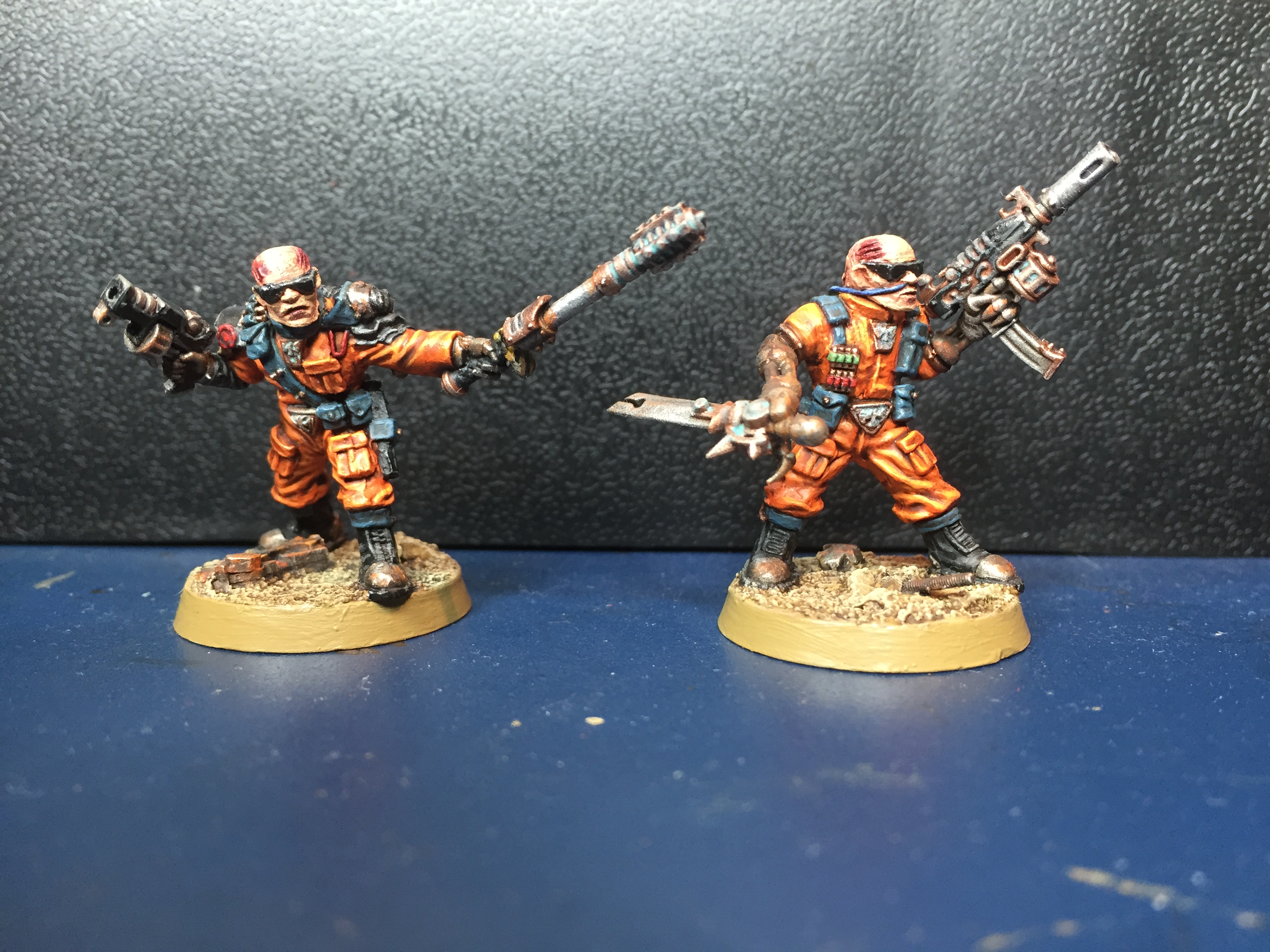 They are looking ace, the orange jump suits work very well. Nice choice on weapons too.