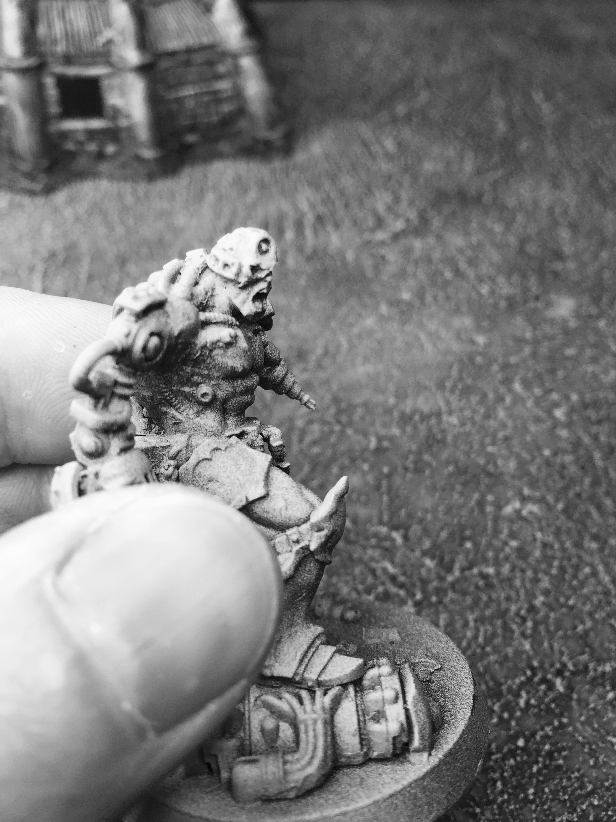 It has also been a bit funny on the painting front… funny as in ‘I haven’t painted any minis this week’! I did finish off the sculpting for this guy (really going for the Mean Machine look here), and got him undercoated:
