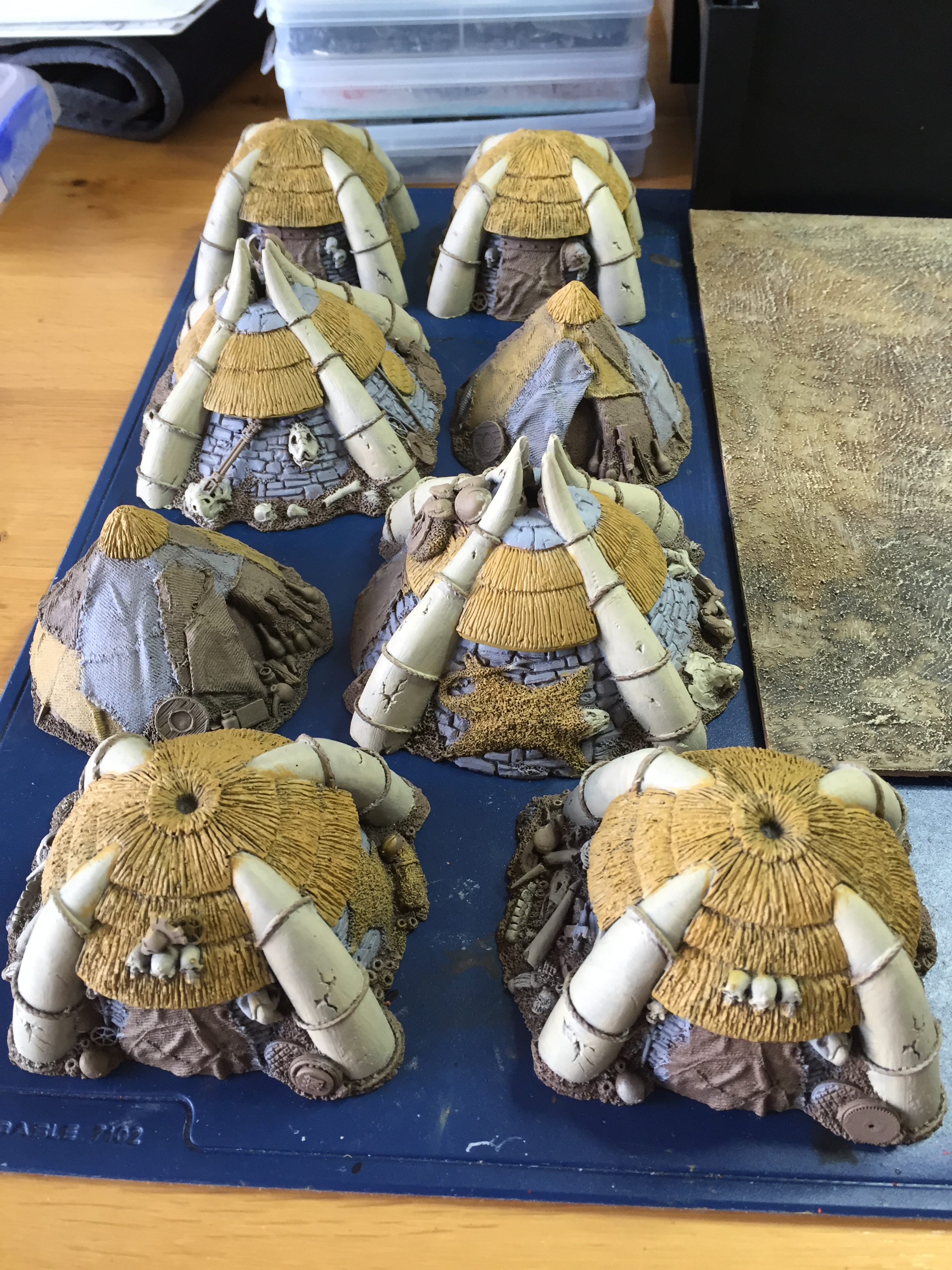 The undercoat looks a bit weird because I’m trying a technique I have read about – he got a black undercoat with a white zenith undercoat sprayed on top of the wet black spray… He’s ready for some paint to go on, but he’ll have to wait a bit because I’ve got this lot to finish up: