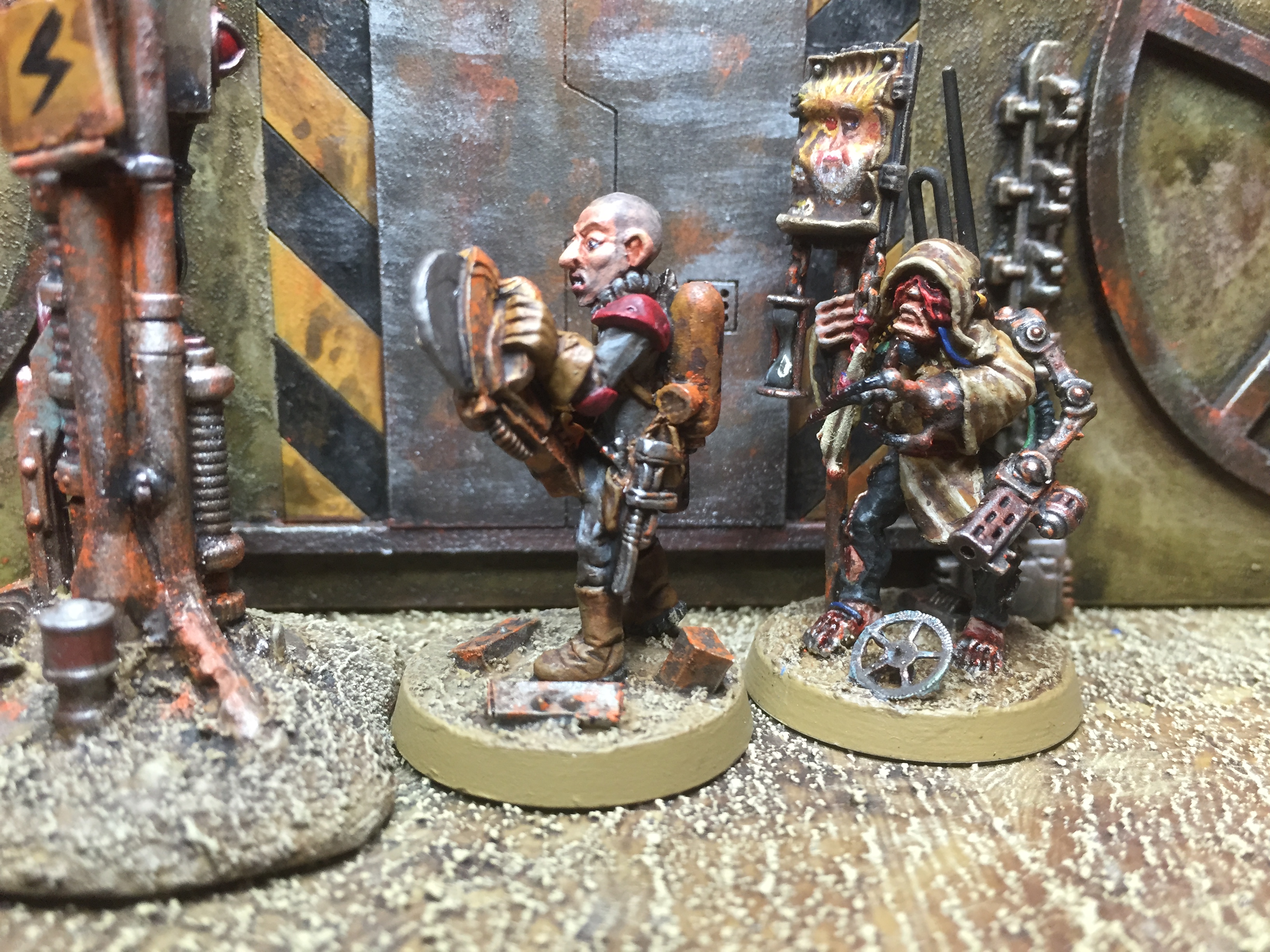 Pretty good eh? This guy is going to go very nicely with my Colony 87 Star Port crew, (coming soon), but he can hang with my conversion of Techpriest Schlan for now, and just chop some shit up: