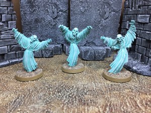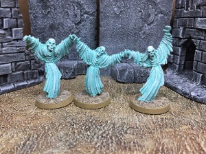 Seeing as I was doing some undead, I also dug out some old school Spirit Host minis, (again from Ross, from an earlier birthday), to add to the party. These minis are so goofy, they make me laugh every time I see them! I have split the host, and will be fielding them as Banshees… I’m calling them the three tenors: