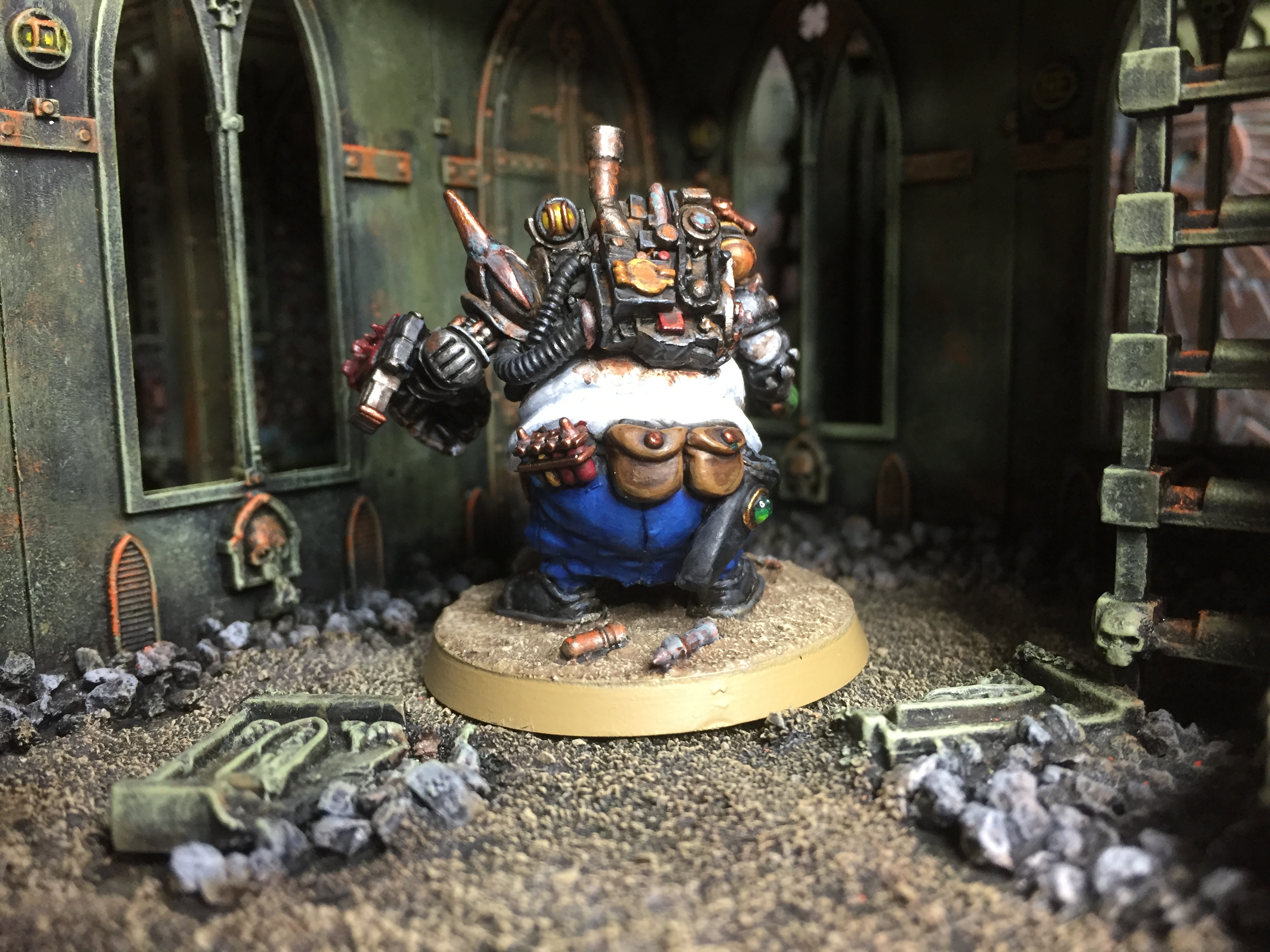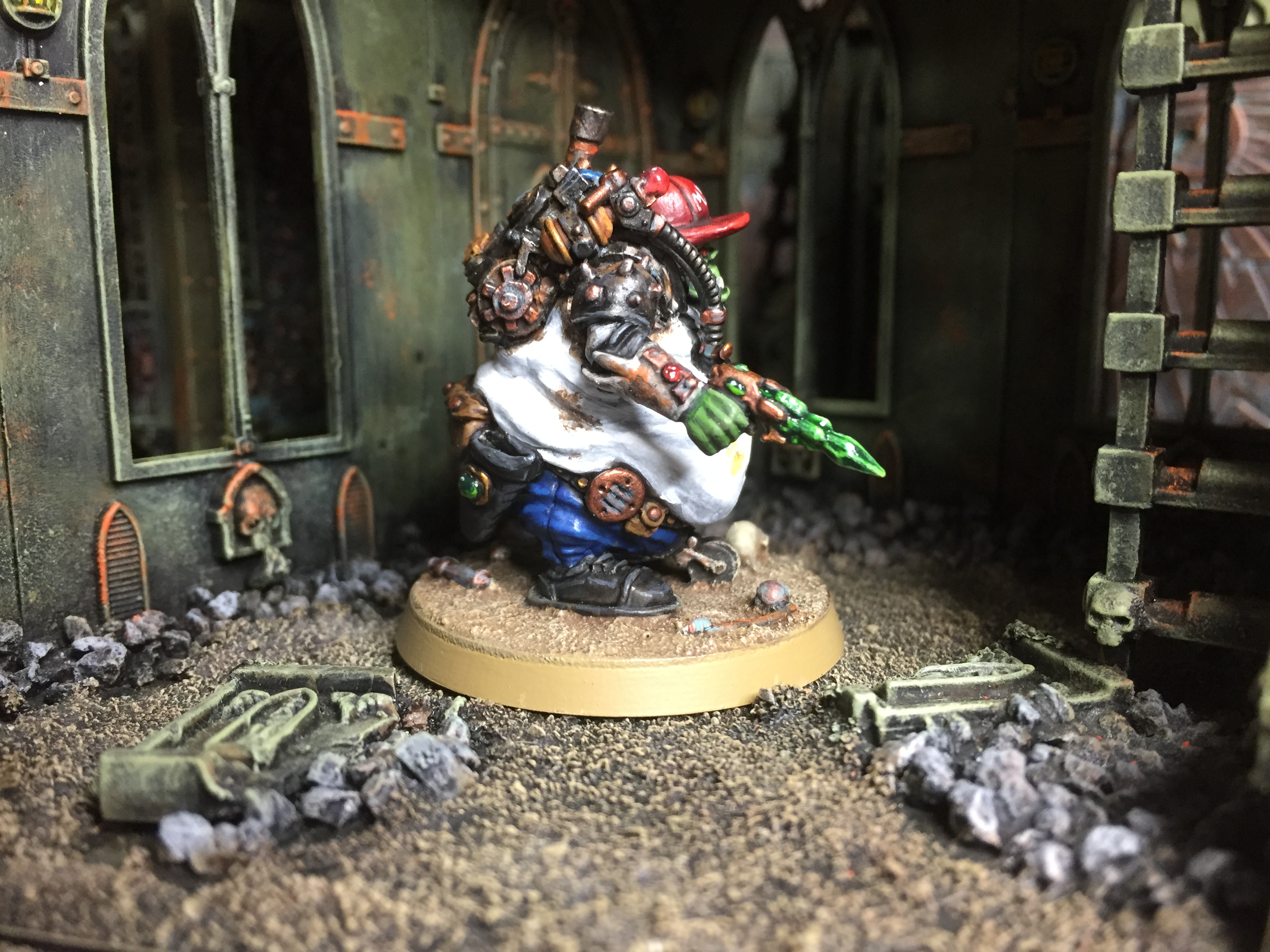 Paint-wise, the armoured bits were a mix of grey and black, rust and gunk. I went with the classic power-dressing blue trousers, white shirt & red tie, and the ‘Make Xit Great Again’ hat finishes the look. The Neuro-disruptor was a faff to do – I’ve never painted a crystalline gun before, so it was a bit of an experiment… I hope it works!