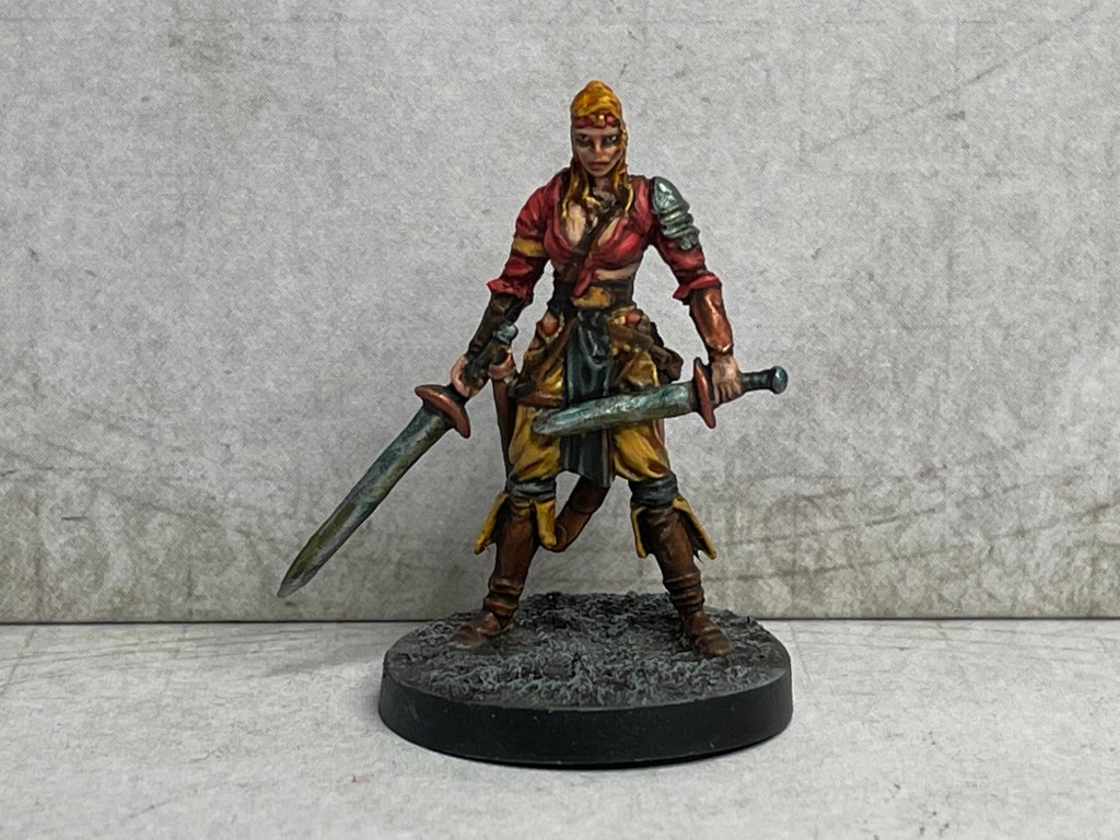 This is a much better mini – probably one of the best in the whole box in fact! I think Valeria has the rare distinction of being the only character apart from Conan who appears in the game, the books, and the film too, so that’s pretty cool. I went for quite naturalistic tones here – I quite like the piratical look that I seem to have captured!