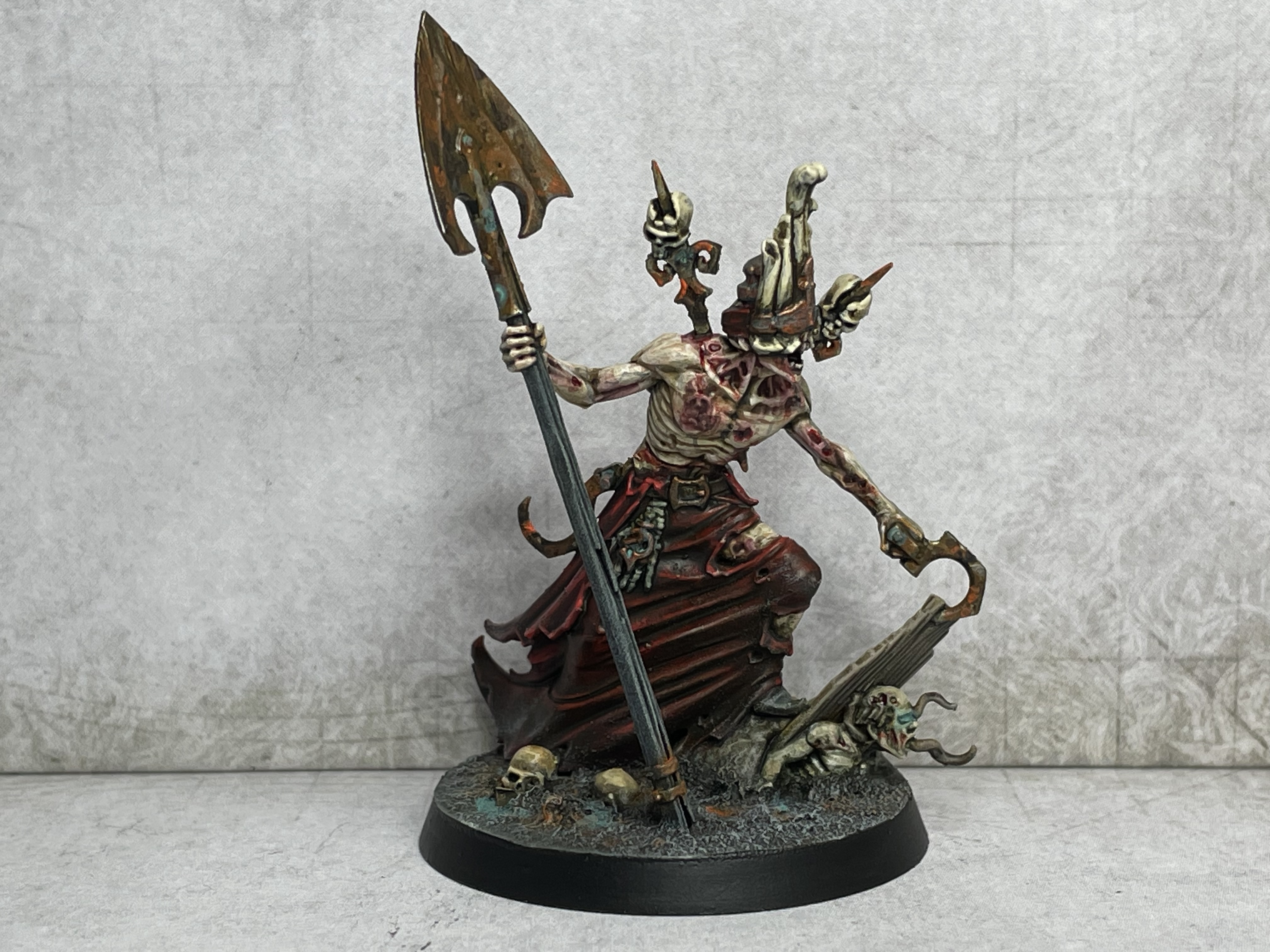 This, for me, is one of the stand-out models from the set, and I knew I wanted to really push the horror theme with this guy. The pale necrotised flesh is a nod to that, as is all the gore & body-horror stuff. I mean, look at the face – absolutely terrifying: