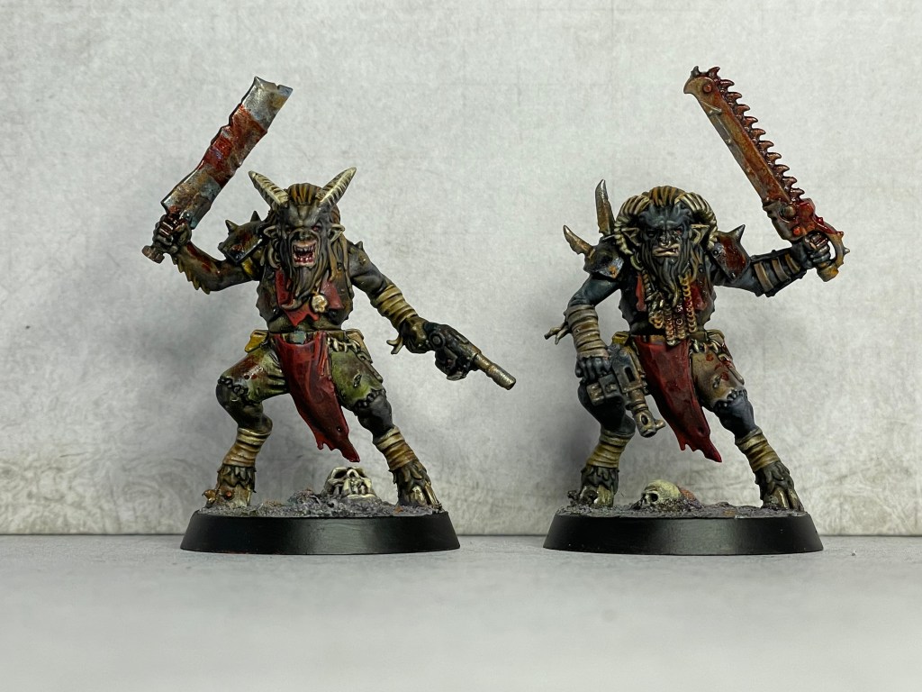 The spindle drones look great and I think you painted them up in a nice ambiguous way where they could be aliens or robots. As for the Beastmen, I wouldn’t want to run into those guys at a bar!