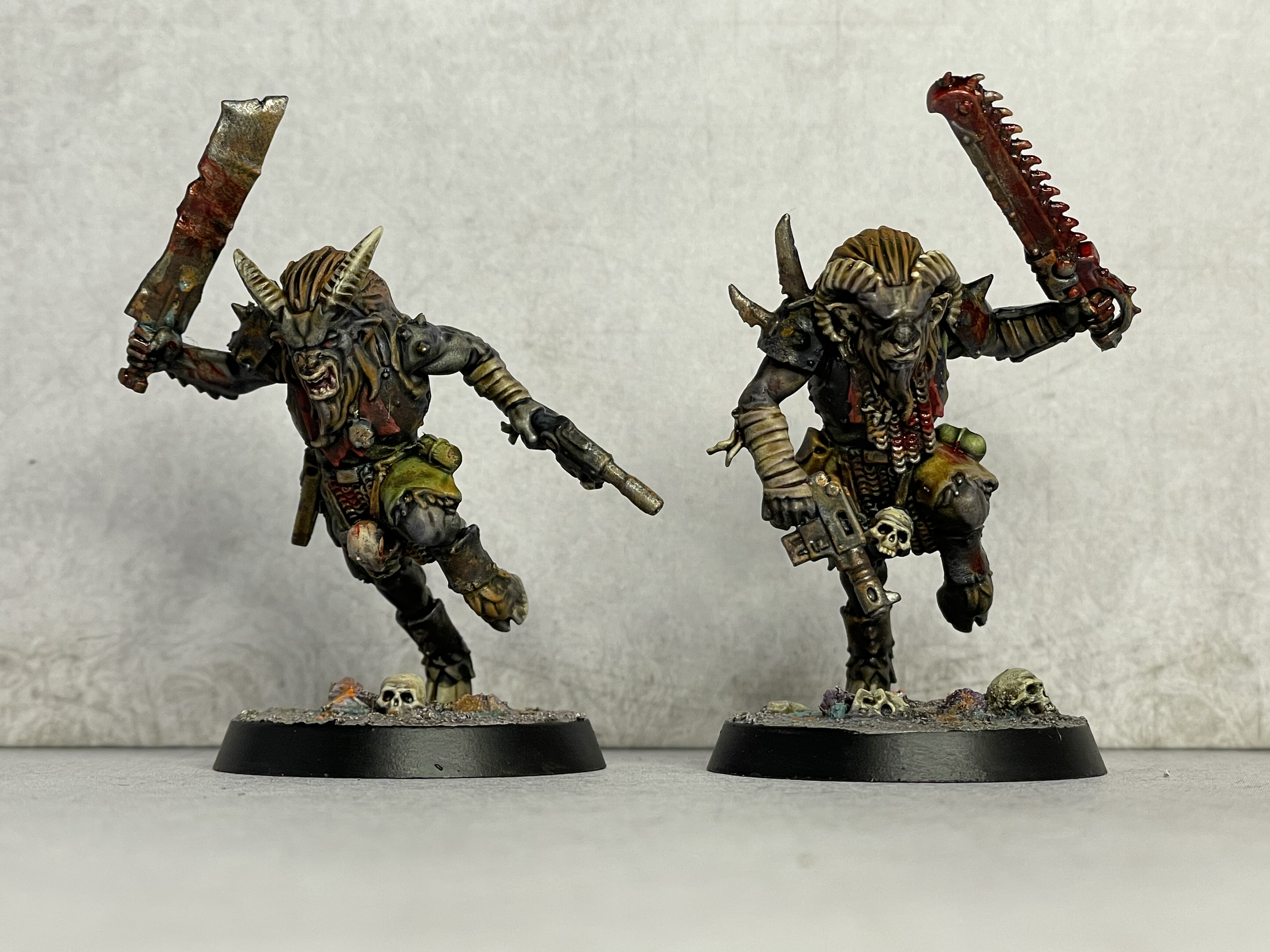 The spindle drones look great and I think you painted them up in a nice ambiguous way where they could be aliens or robots. As for the Beastmen, I wouldn’t want to run into those guys at a bar!