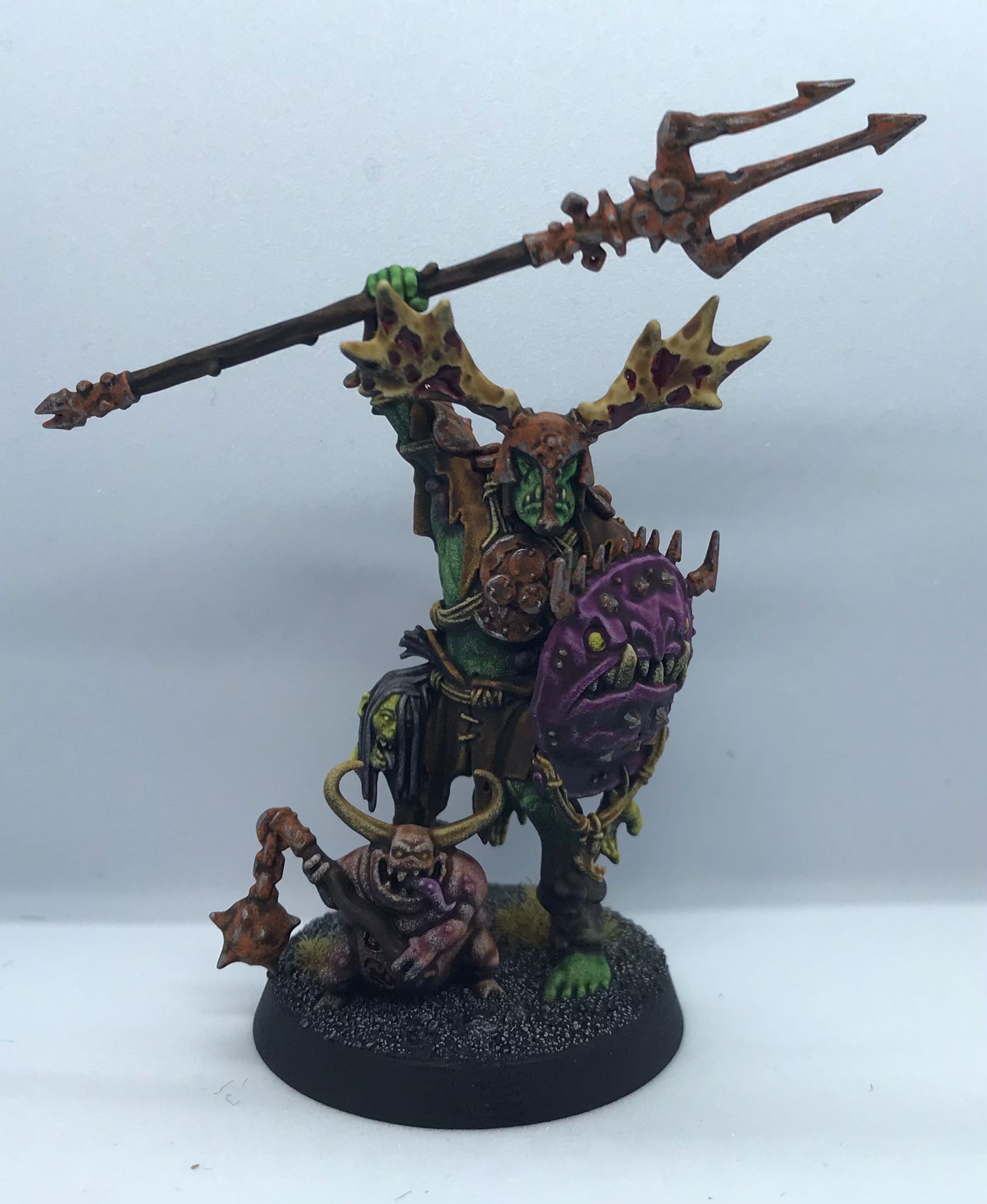 Finally, Ross’ Champion – Slumpsha Swampstrider, Chaos Orc Champion and a total beat-stick, with Long Legs and a Nurgling Infestation: