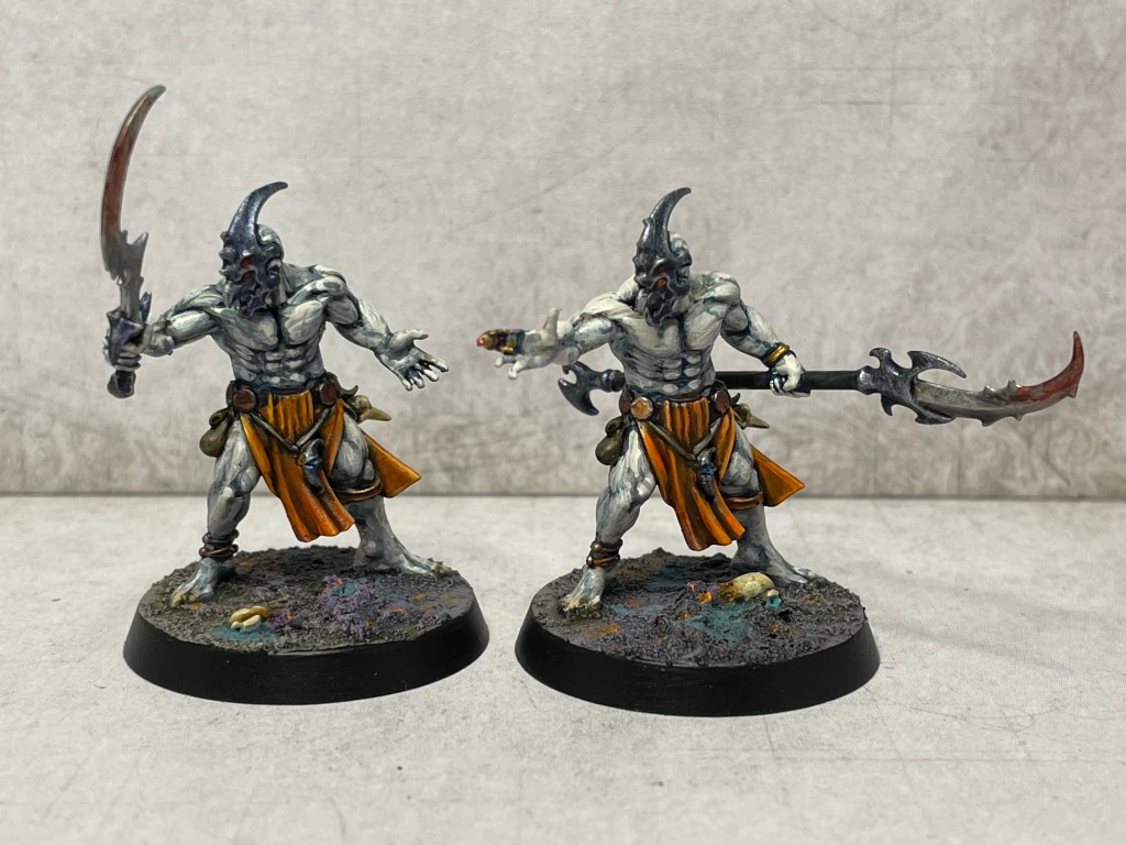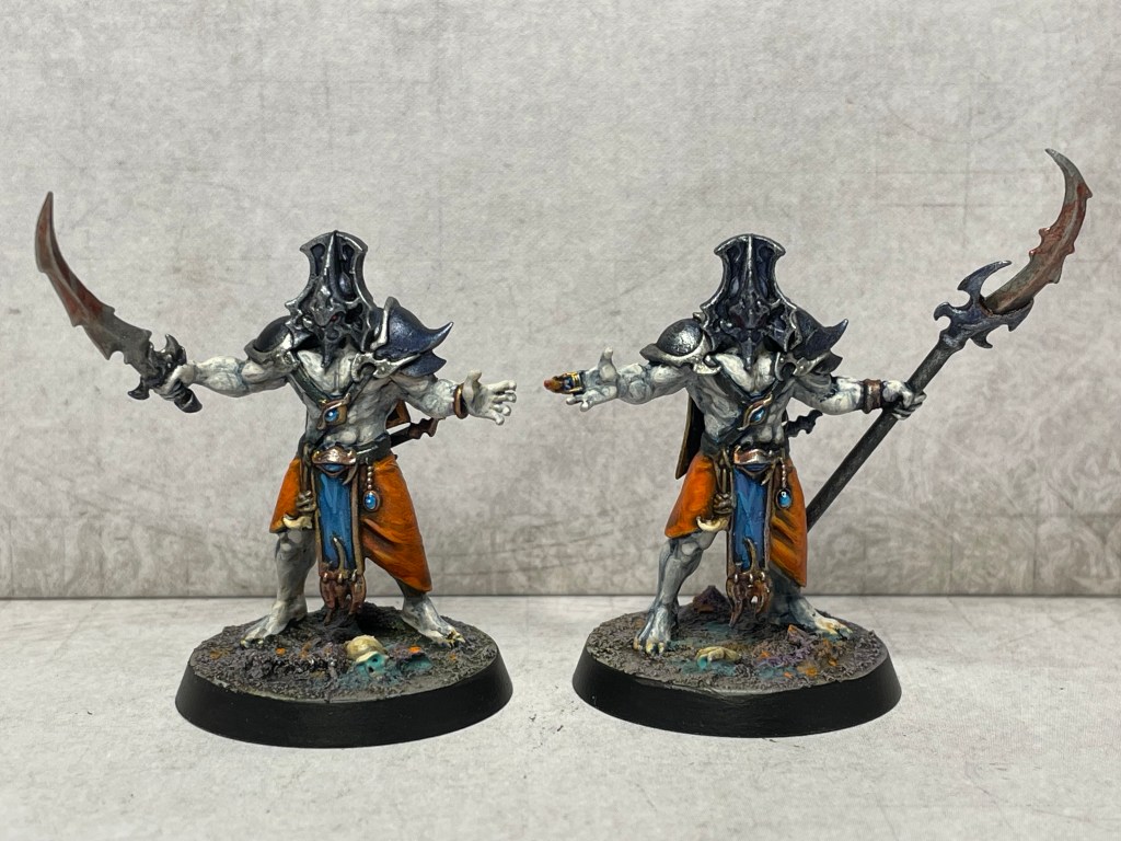Great conversions Alex, it certainly adds some variety to the models, I like the skintone you’ve achieved, gives a very otherworld feel to them, and great additions to your force, at this rate you’ll have a small Warhammer army, not just a warband.