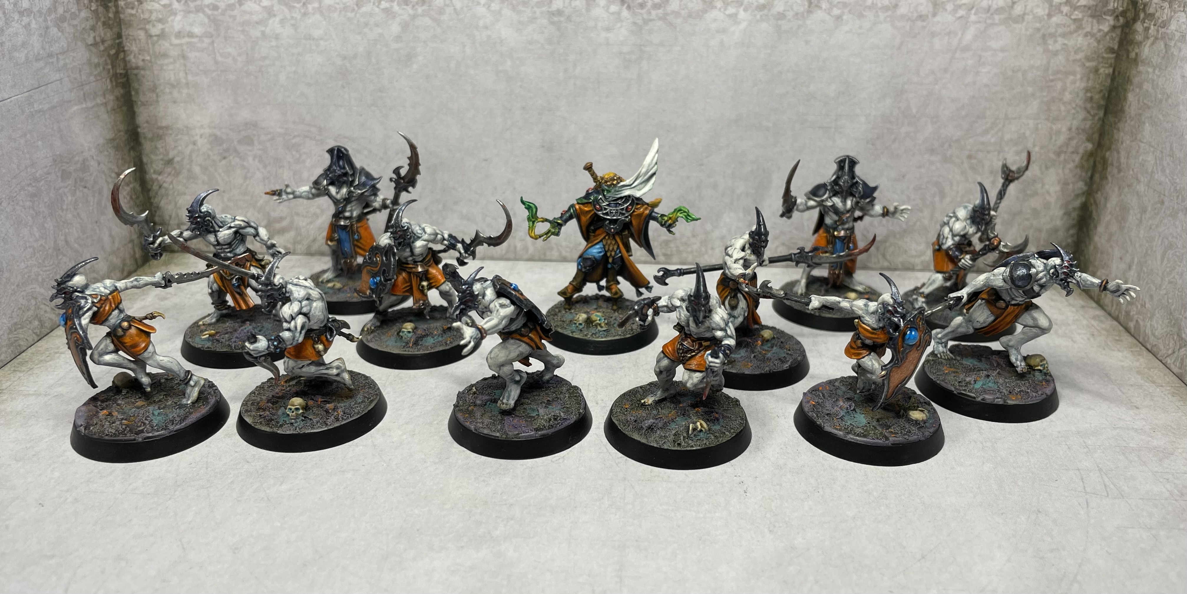 Those small changes will definitely help keep this group more interesting to look at on the tabletop. Like the skin shade too – very tzeench-y.
