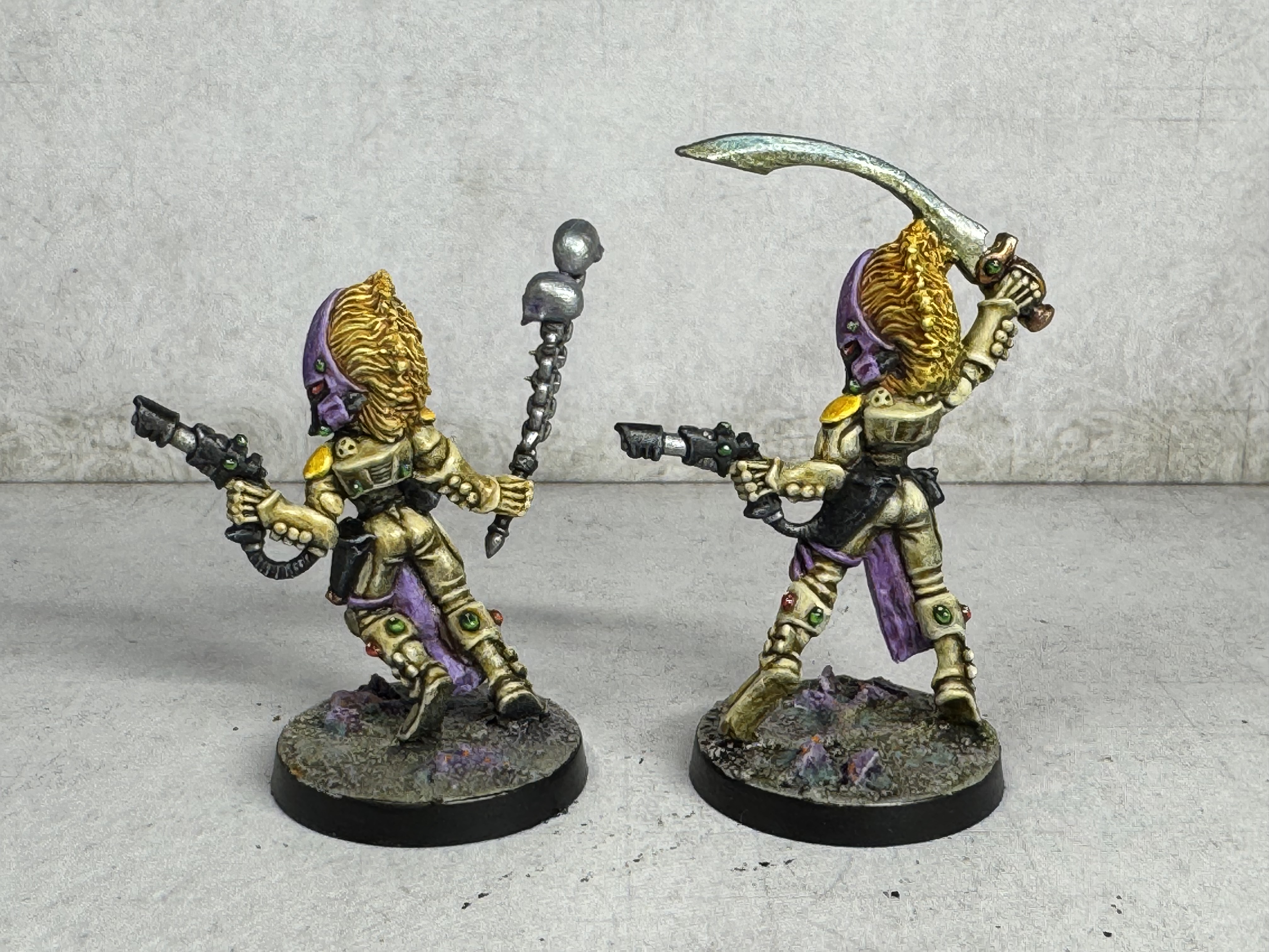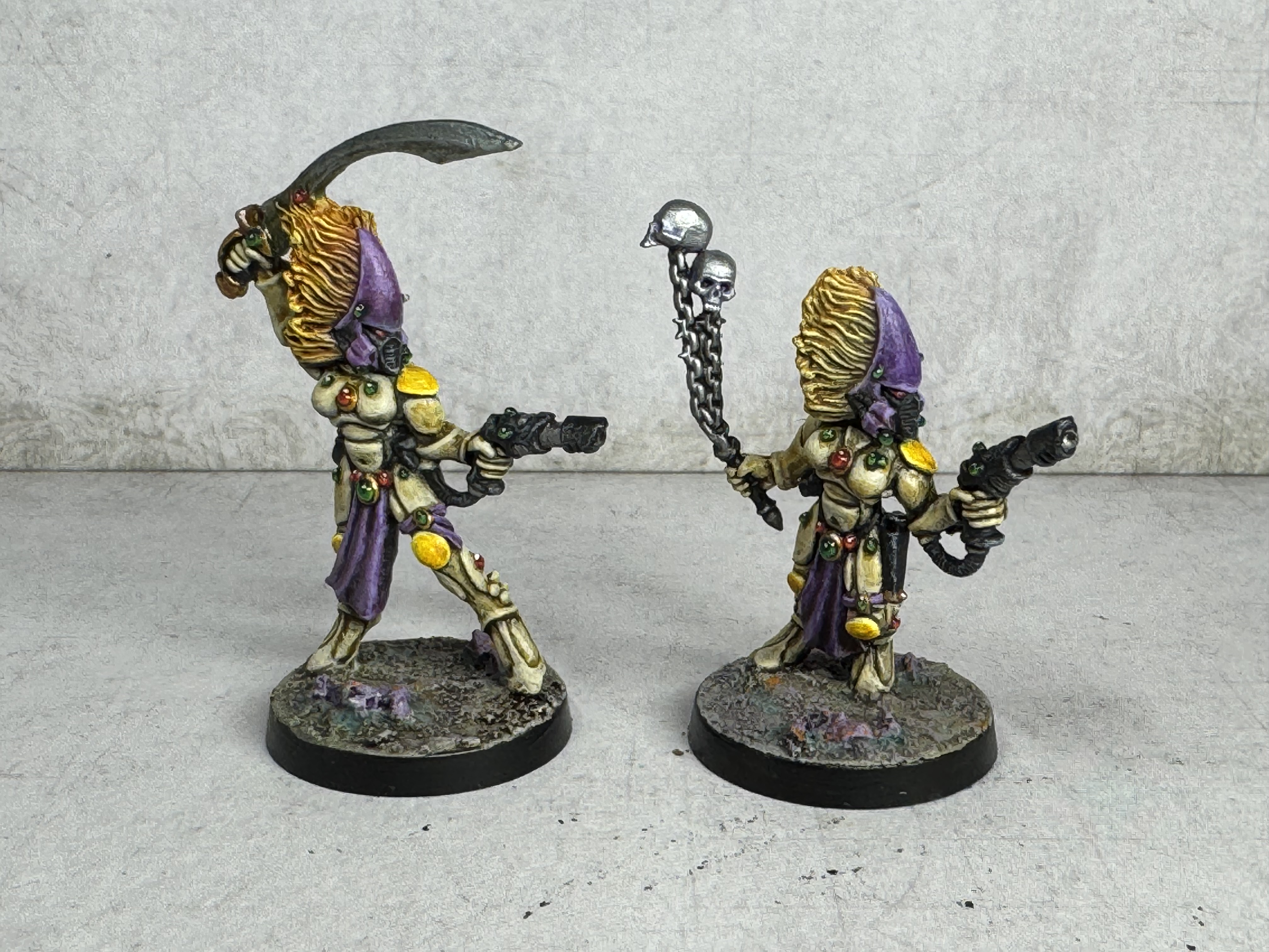 Finally, I have a couple of Howling Banshees – I love these minis, and I think adding purple to the colour scheme works particularly well. One of them had her hand butchered by a younger me, so a bit of surgery and a weapon swap was required: