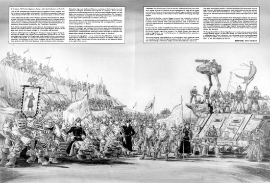 I mean c’mon, it doesn’t get any better than this! The whole IG section in the book is a feast of Pete’s work, and really I think my love of the Imperial Guard is really rooted in these images. Sadly, Pete passed away last October, and that sad event really resurfaced this piece in my mind, along with my long-held ambition to recreate this imposing army – helpfully listed out here: