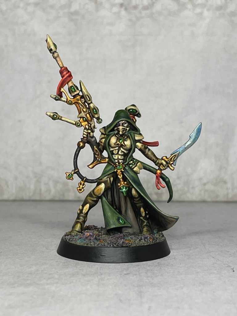 I didn’t have as much fun painting this guy as I hoped – the whole ‘man of iron’ fluff has so much potential, but this mini is just a bit bland. Also, it is shite to photograph. Anyway, I painted him up with a bunch of different colours, like he had been patching himself up with parts salvaged from fallen comrades… I don’t know if that comes across or not, but I ran out of fucks to give on him, so this is how he stays.