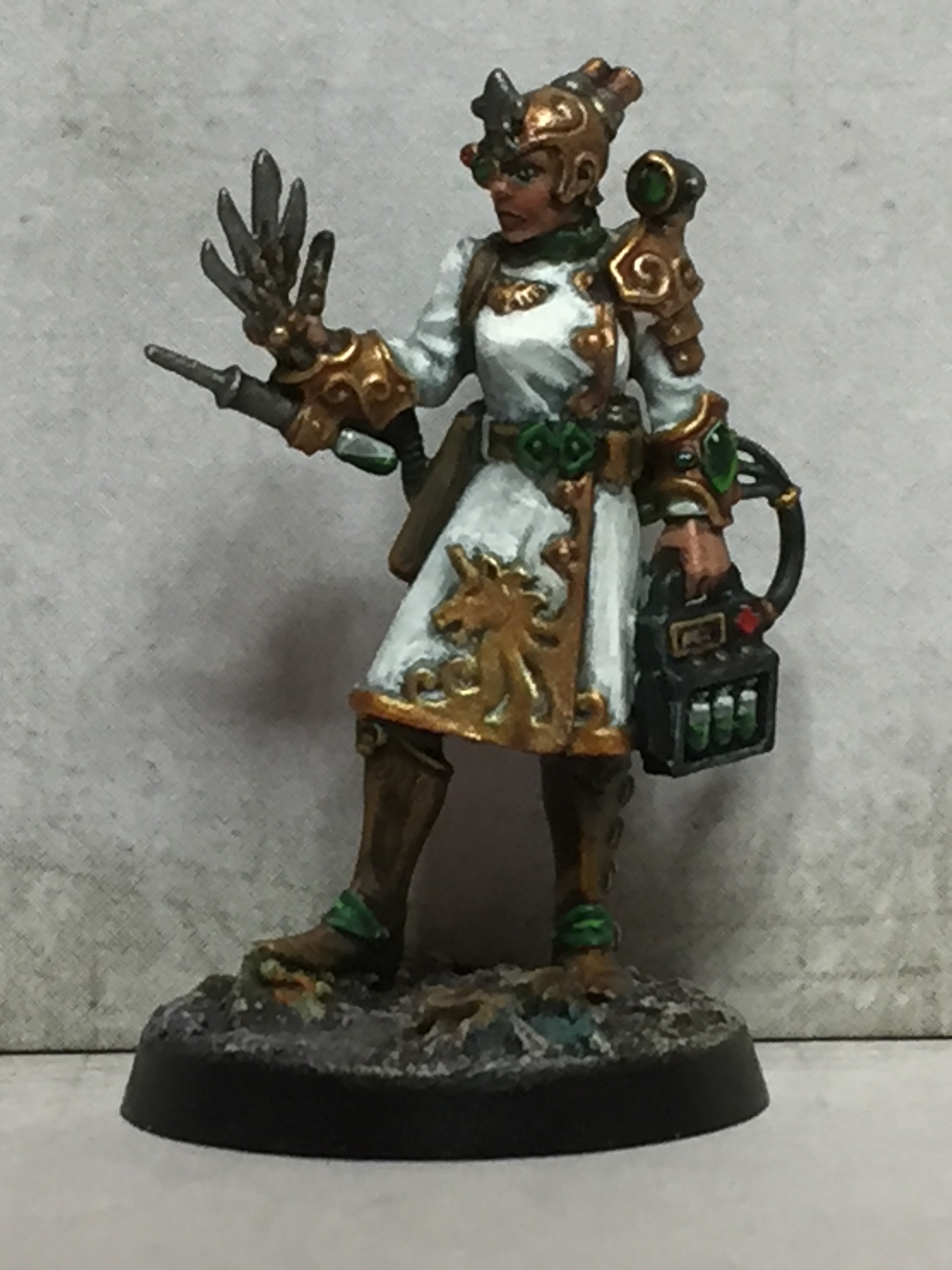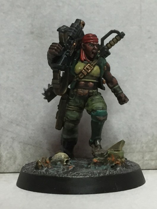 Greetings Terrans, this will be my last post this year – a few new minis to share as I round out my Warband for Heresyofus’ Daemon Ink event. I completed the rest of the Elucidian Starstriders to round out the warband to 14 (Marines count as 2), so in the interests of rounding out the numbers, I also added Sergeant ‘Ripper’ Jackson to the party. Stylistically she restores a bit of balance to the party, as it was starting to look a bit too heavy on the Steampunk aesthetic.