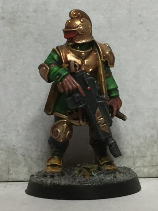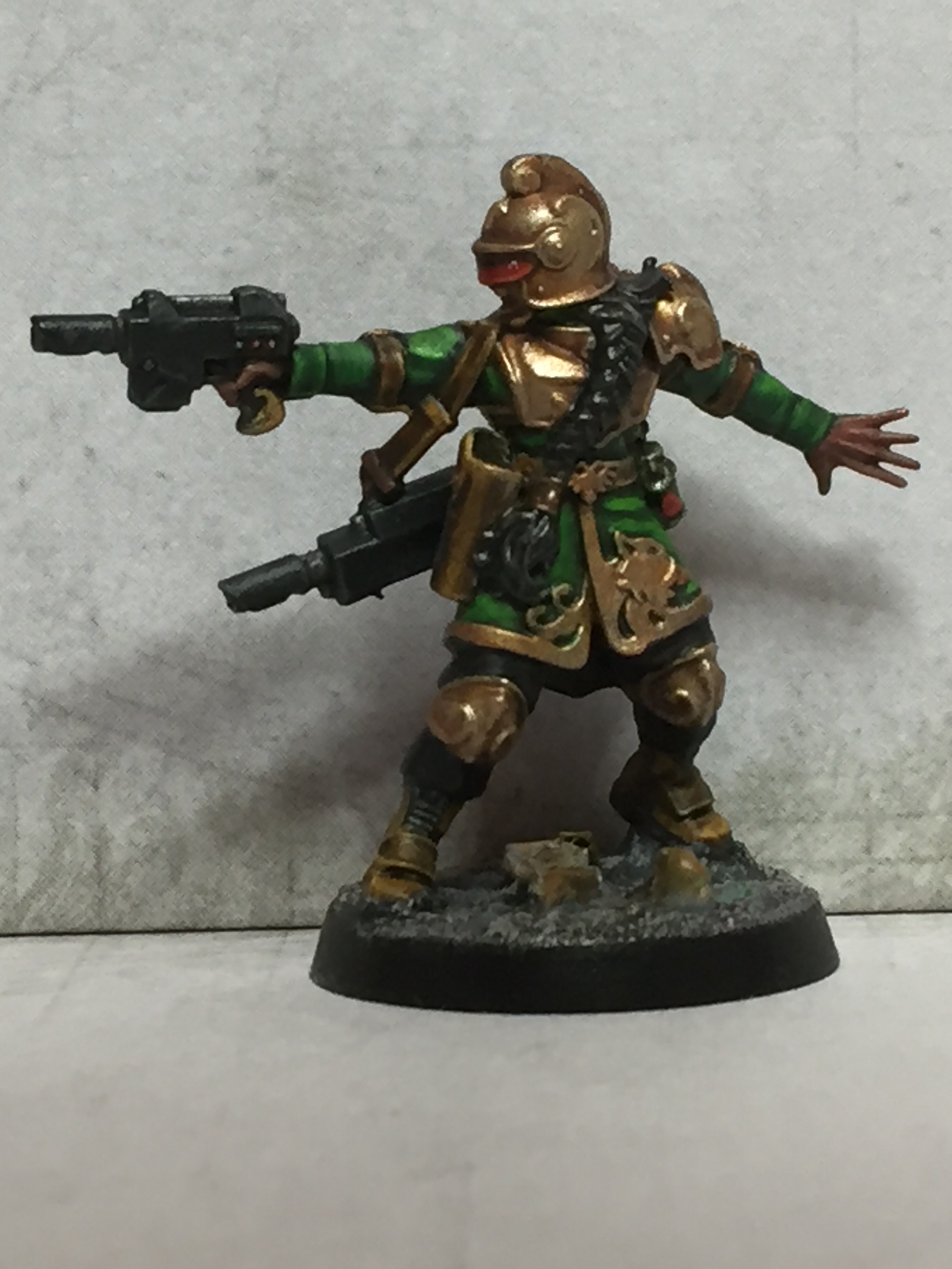 Astra Millitarum Veteran xxxxxxxxx, a tough, no-nonsense individual, completely loyal to Inquisitor xxxxxxx & friendly rival to Brother-Tutor xxxxxxxxxx