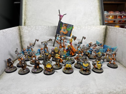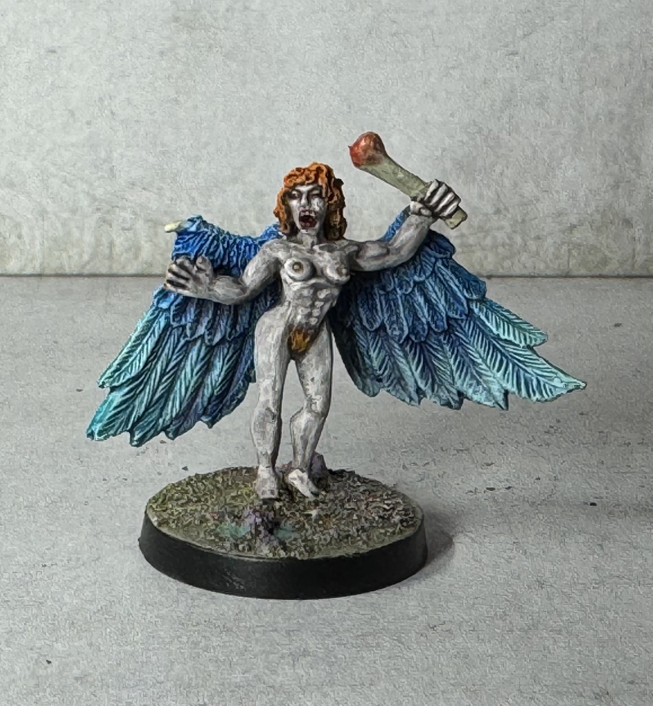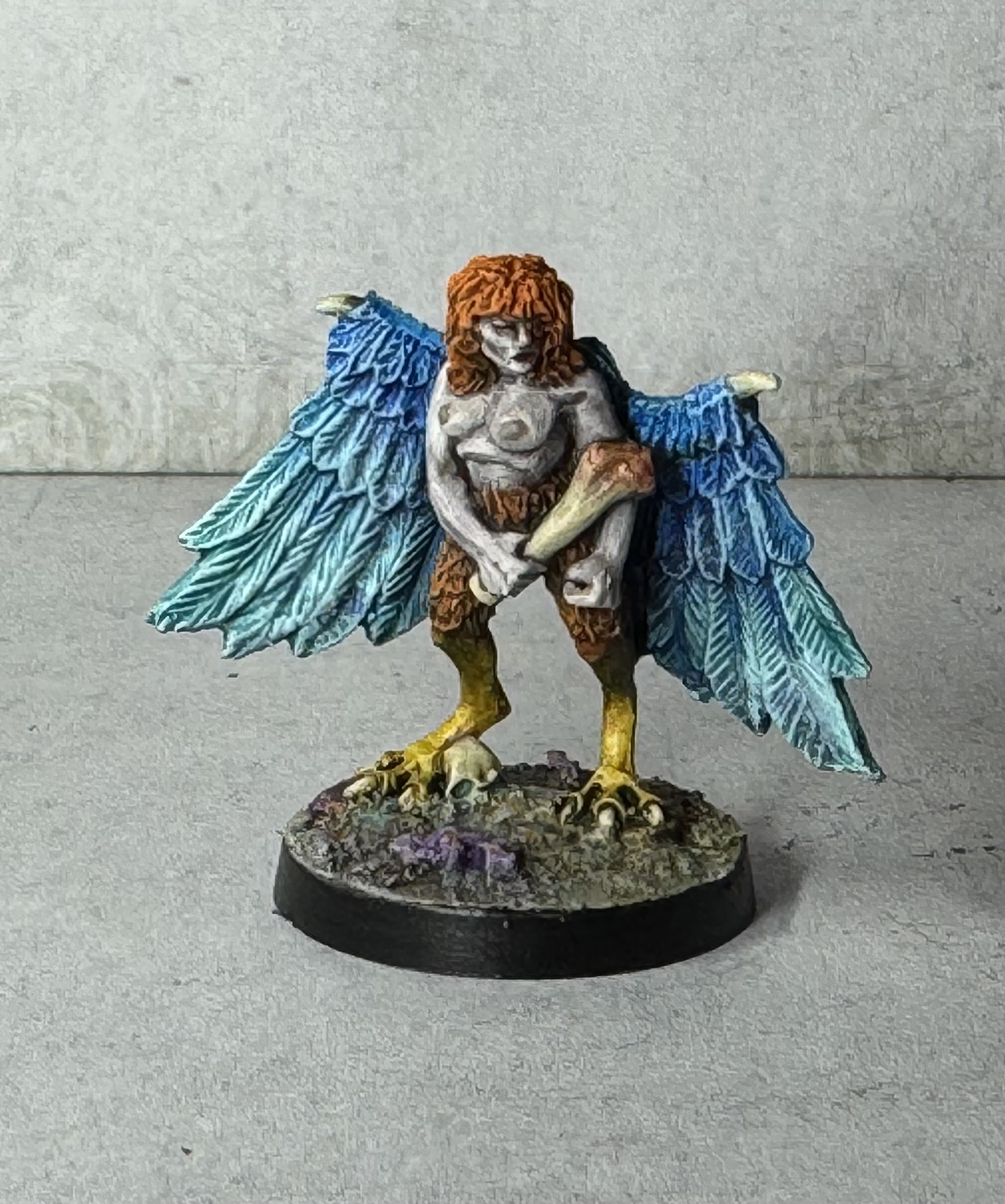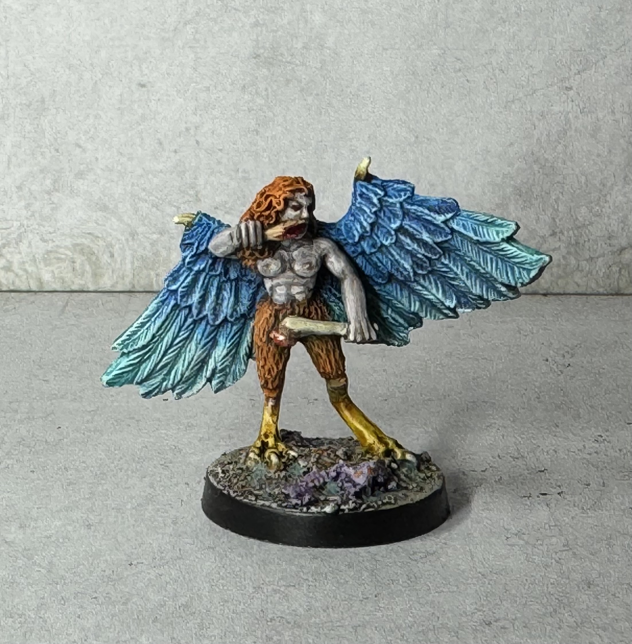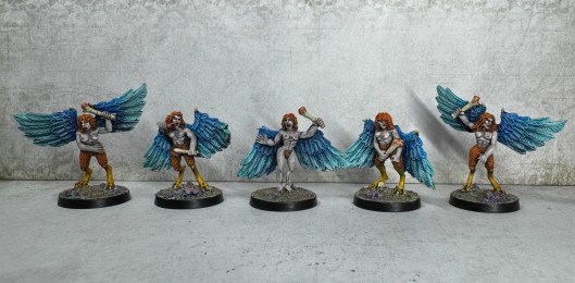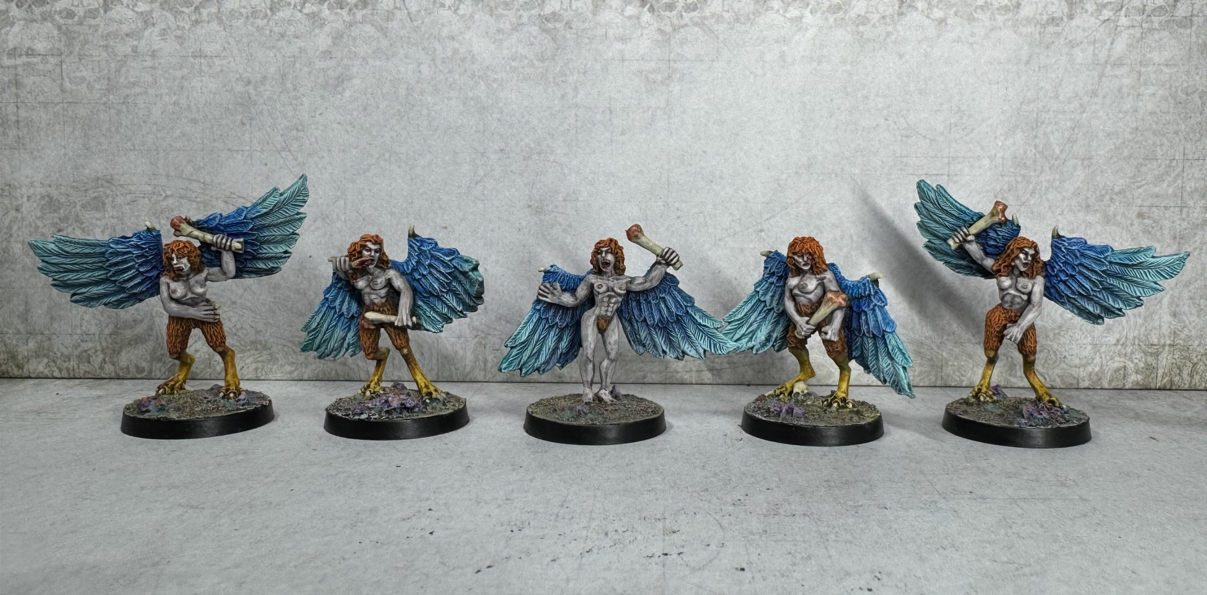 Greetings Terrans, I had a bit of a spurt of enthusiasm since my last post, and actually managed to get the last minis painted up for my OldHammer iteration of Scynir’s warband. Back when I first rolled up the warband in 2022, it was mostly Beastmen and a few humans, but I also allowed myself extra rolls following various games I played with the plastic incarnation. As a result, I got some pretty interesting followers to add, including the Chaos Dwarfs I transitioned to lead a few weeks ago. Here are the OldHammer iterations of some of the more weird and wonderful warband members, starting with these feathered beauties: