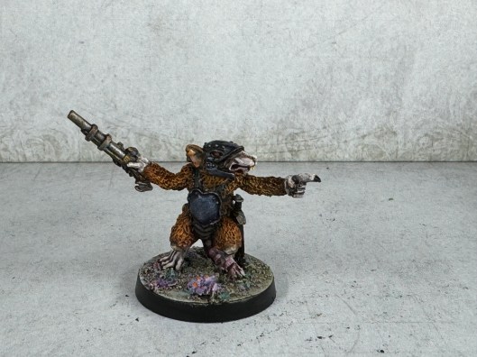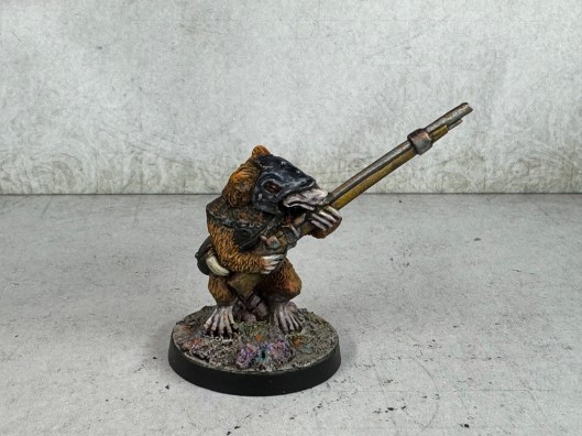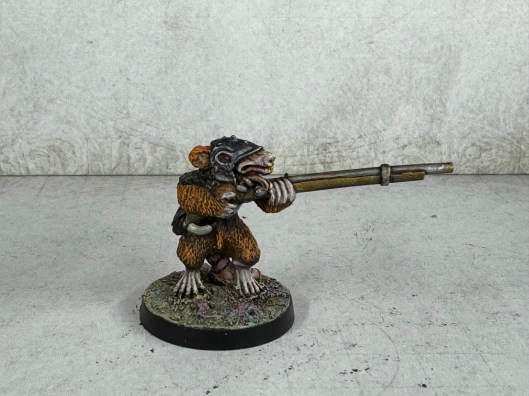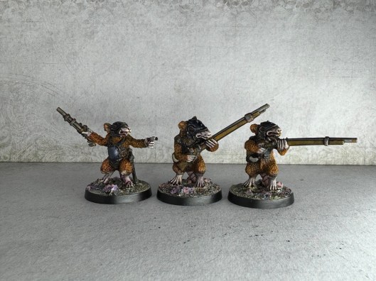 These guys are also from Foundry, but are much less fun to paint than the Harpies… I think the sculpts are a bit ropey, no lovely long ratty tails and they look a bit well-fed to me – I prefer my rat-men to be more gaunt and feral looking! But still, these ratbags do add some charm… and some range!