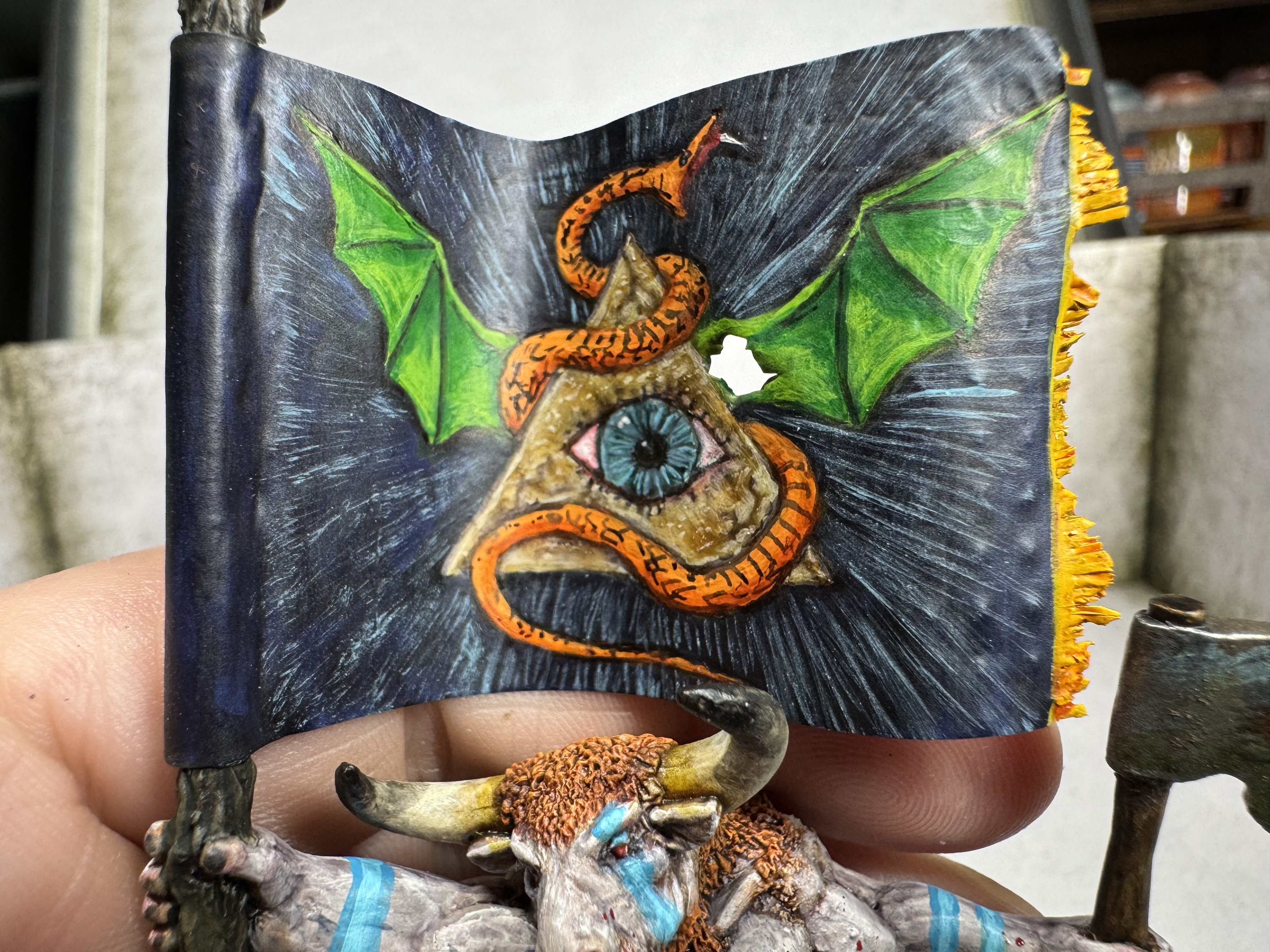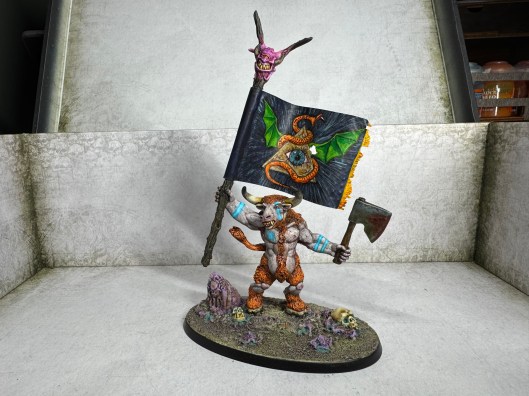 Finally, we have a big ol’ Minotaur, and what better job for such a big beefy boy than being a big beefy flag waverer!