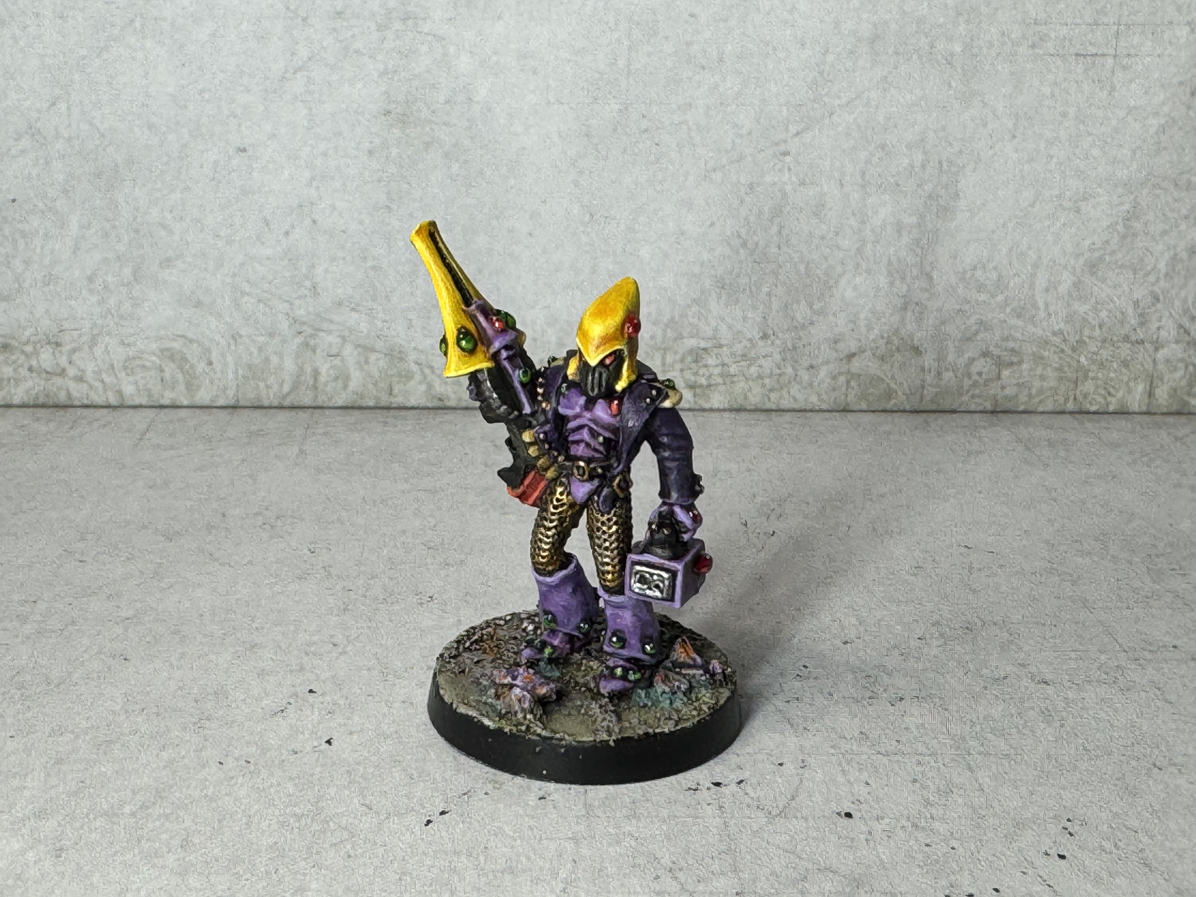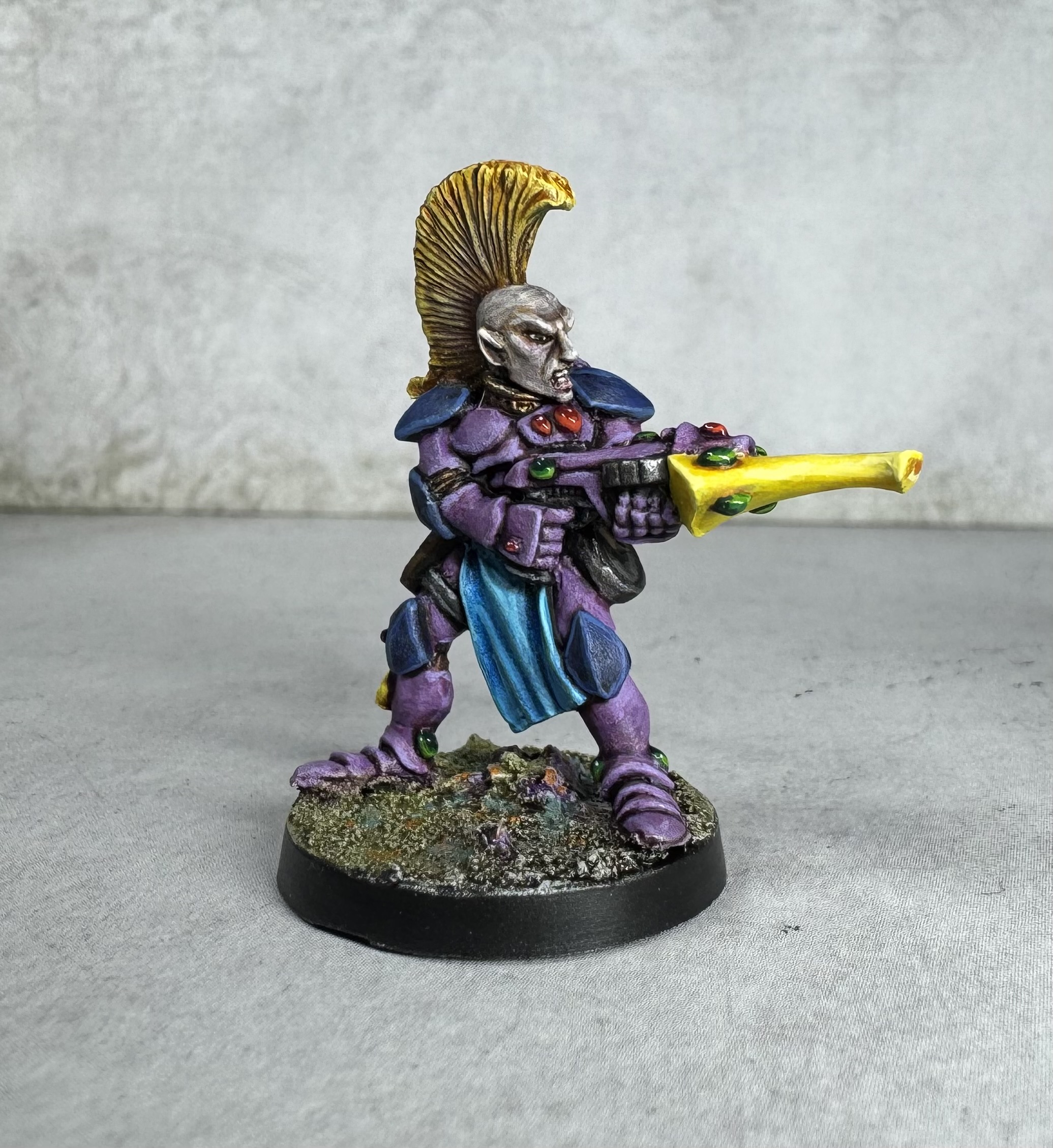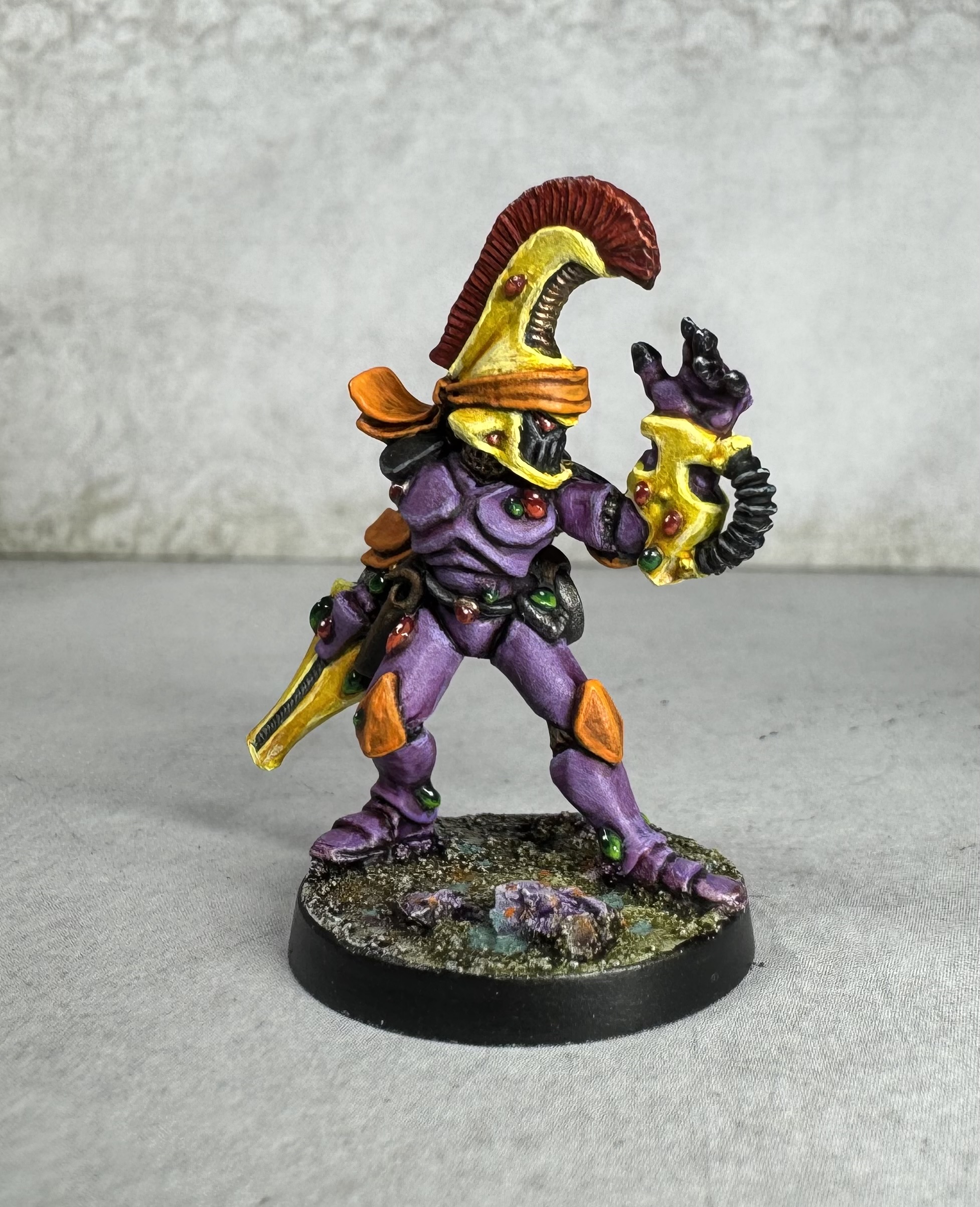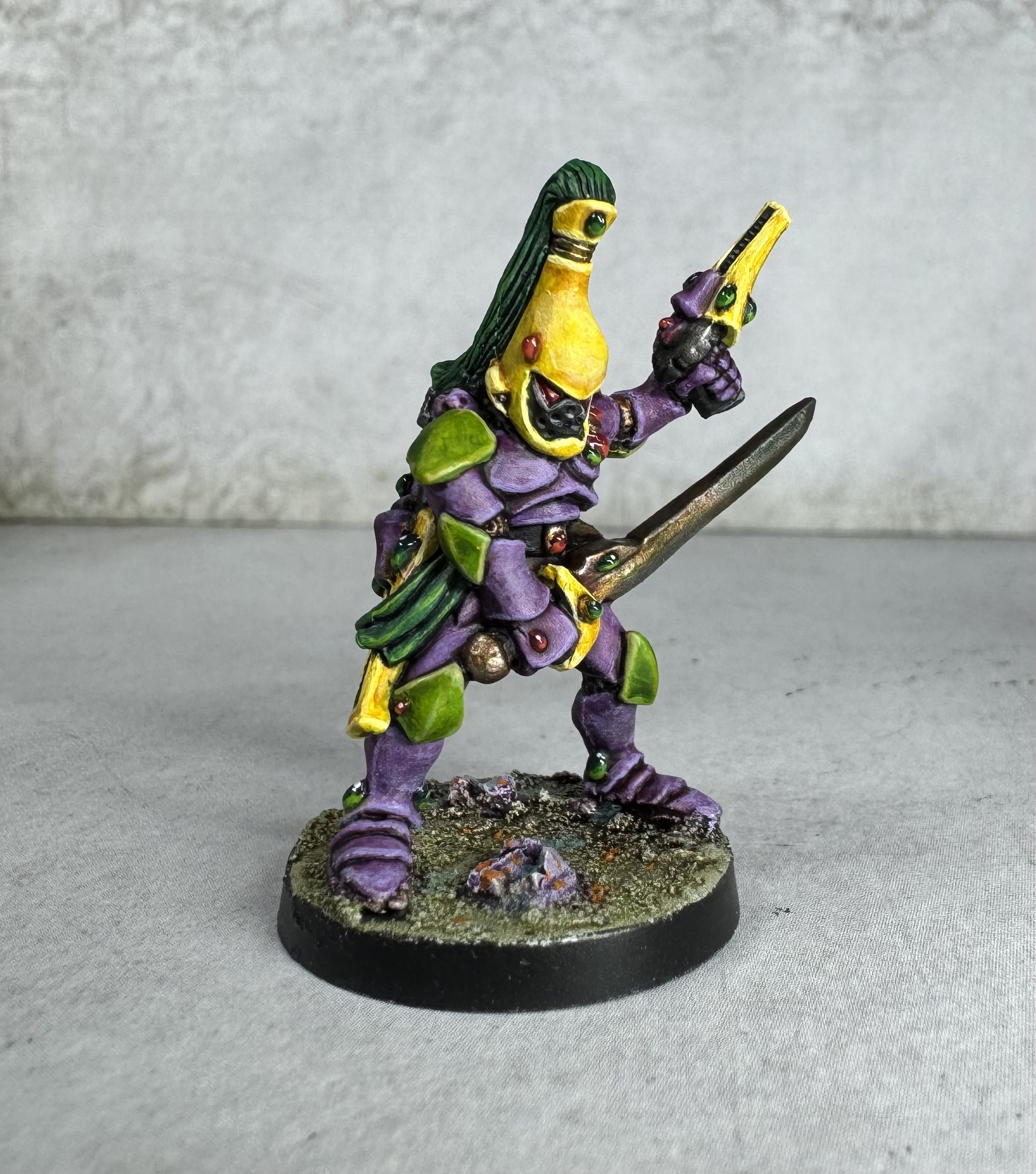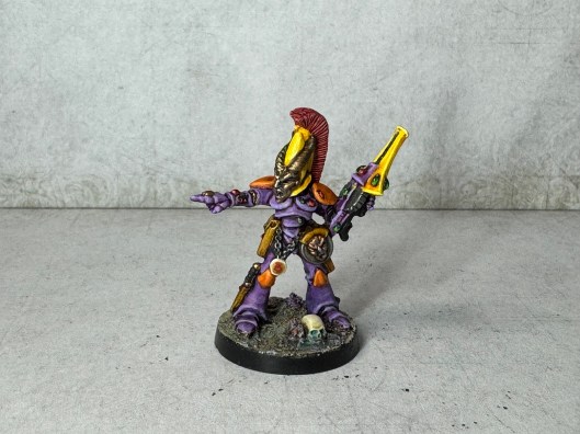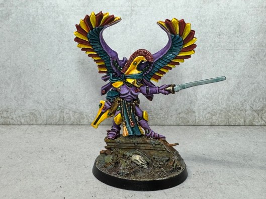 Firstly, just a re-show of the Craftworld Autarch – I’ve already shared this mini, but I reworked some of the details so I thought it worth reposting. I used Teal as the spot colour, and combined with the wings, this strongly ties this Autarch back to the Swooping hawk shrine, (but also hints of Dire Avenger and Howling Banshee in there with the weapon choice as well):