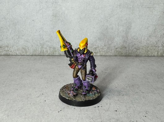And finally, this guy is a bit more melee focused with Shuriken Pistol & Power Sword… The green pads tie him back to a former life as a Striking Scorpion: