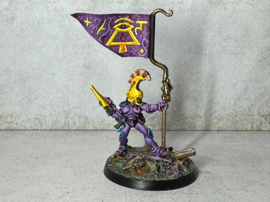 Next up, a flag waverer – a neat little conversion if I do say so myself. I’ve also used a dark blue spot colour here to suggest this Guardian is a former Dire Avenger: