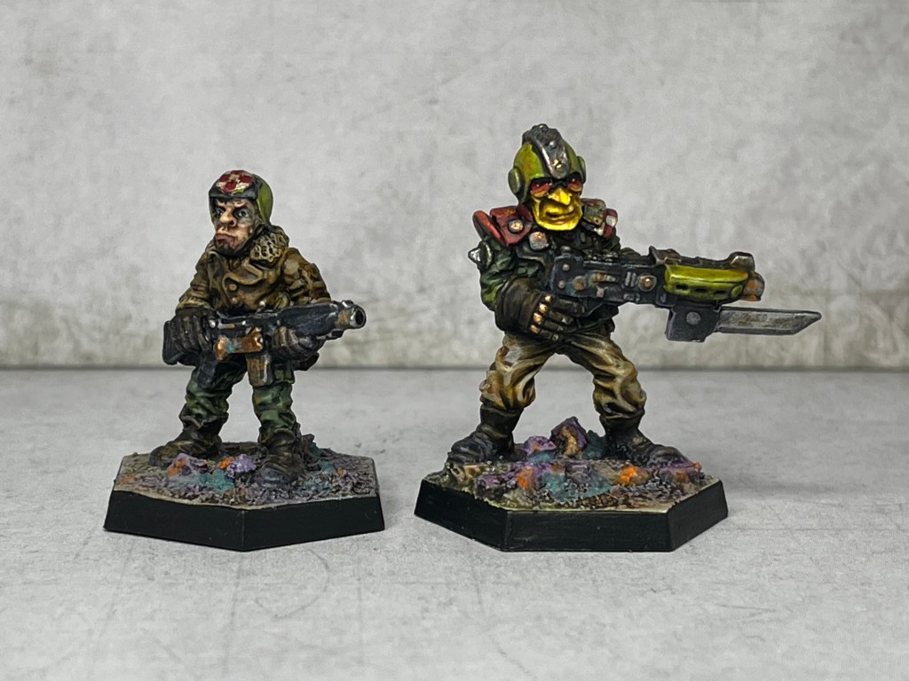 Greetings Terrans, hope you’re all well. This is the last in this little sequence of posts as I put together the last elements of my Bob Olley inspired crew for Stargrave. We were almost complete on the last post, so it’s just a pair of troopers to share today – lil’ Wayne and Big Garth: