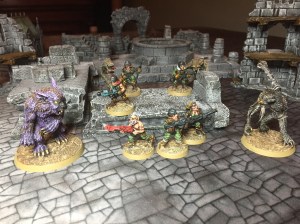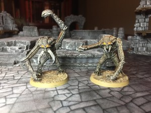 And here’s a quick pic of these beasties attacking my Olleyan Mercs – just to give you a sense of scale: