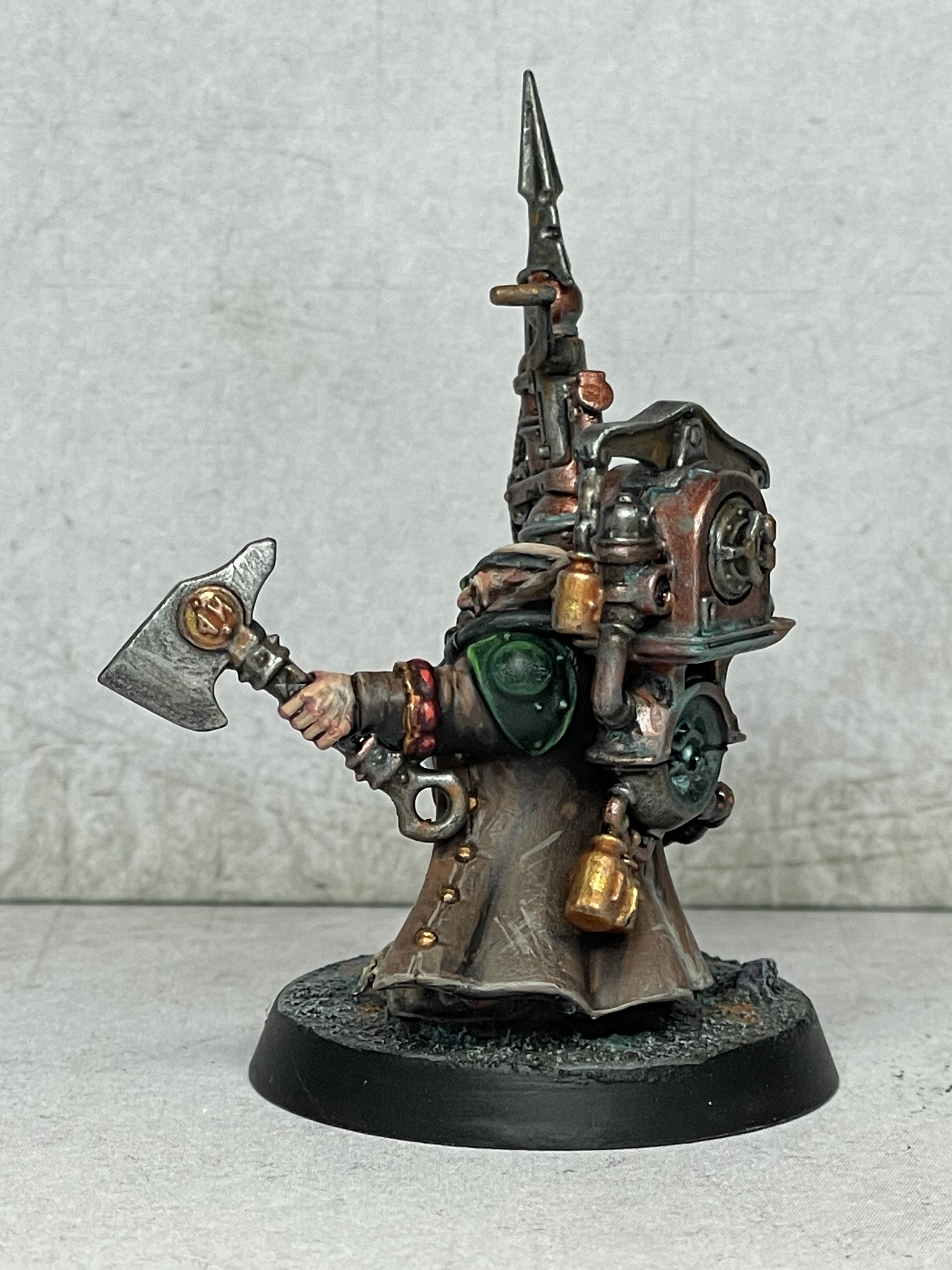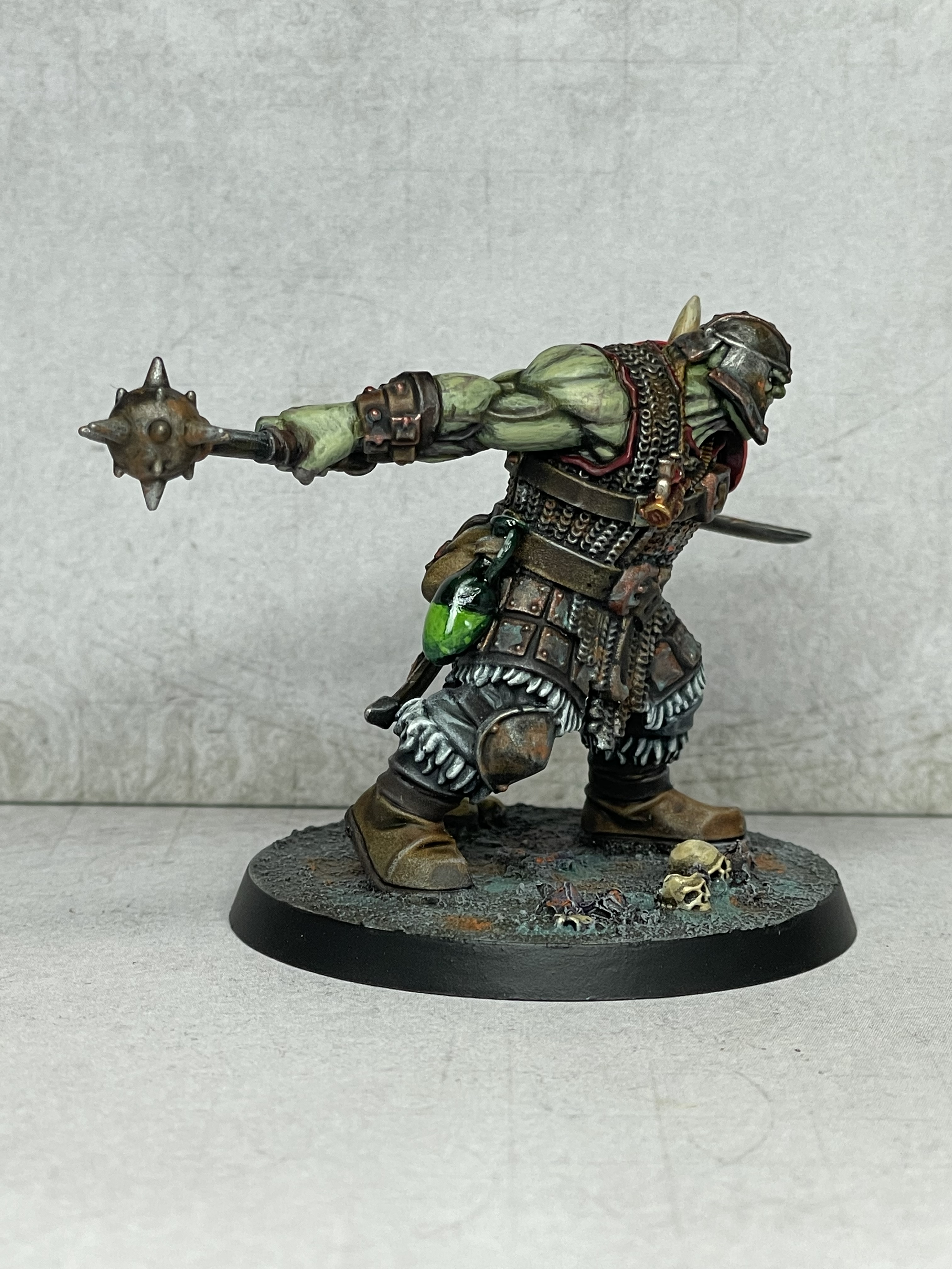 There is so much lovely detail to pick out – various trinkets and doodabs from across the Mortal Realms, just like you’d expect for a Merc… I really enjoyed painting the amphora up as glass for example, and that shoulder armour was an absolute delight! Now, obviously I’ve taken some artistic license on the skin colour, but he looks so much like Ragnarök Hulk that it seemed a shame not to just go with it… I think it looks really cool, and that’s the most important thing (obviously), but if anyone really needs a rationale, we can blame it on the corpse diet 😊