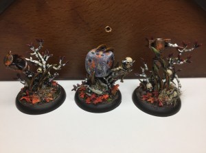 The robe is painted with a different set of greens, so it is tonally different to the armour without moving away from the theme, and I repeated the same trick for the wreath decoration on the armour and the gems. I pushed the concept to the max for the crystalline blade – I’ve never painted one of these before, but I think I did ok, and it was that was a cool thing to research and practice. Finally, a splash of red and some neutral bone completes the palette.