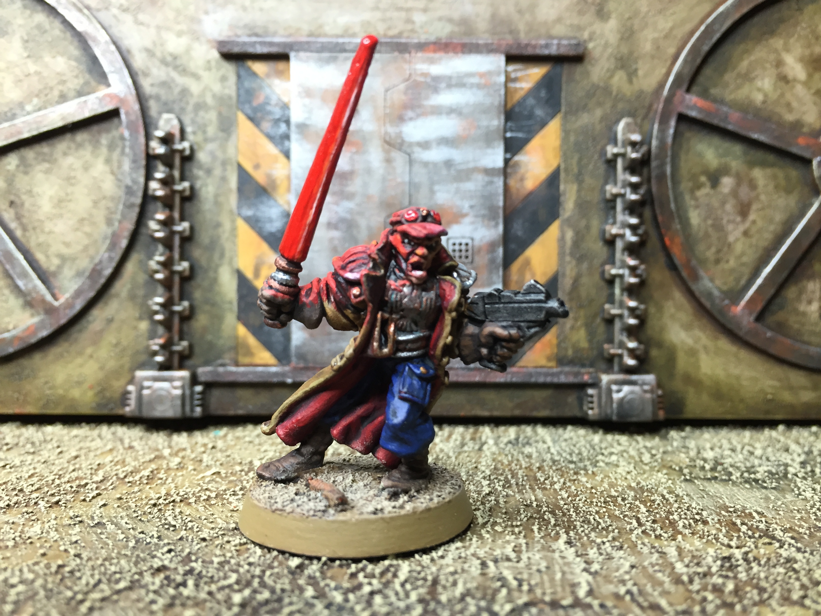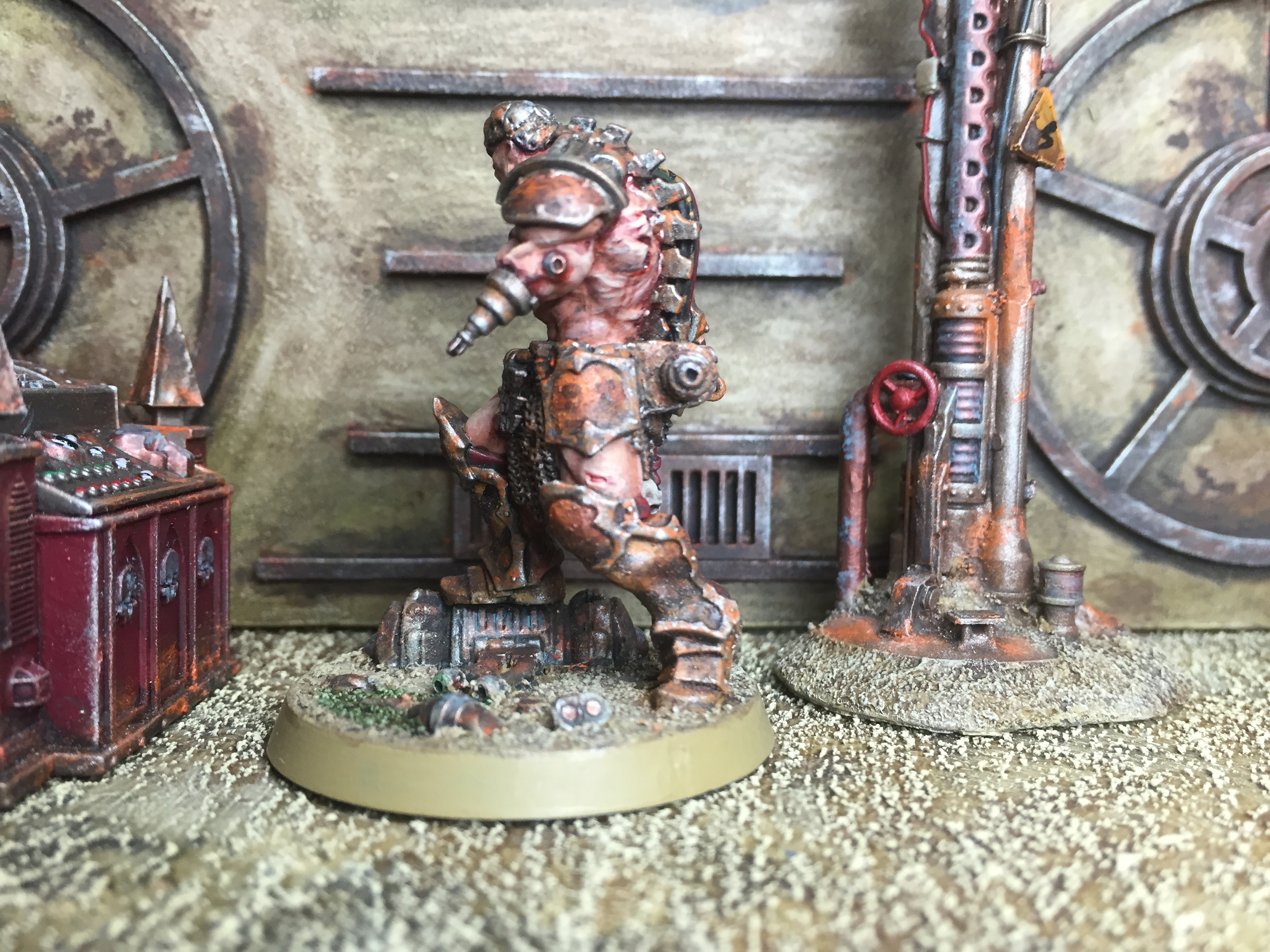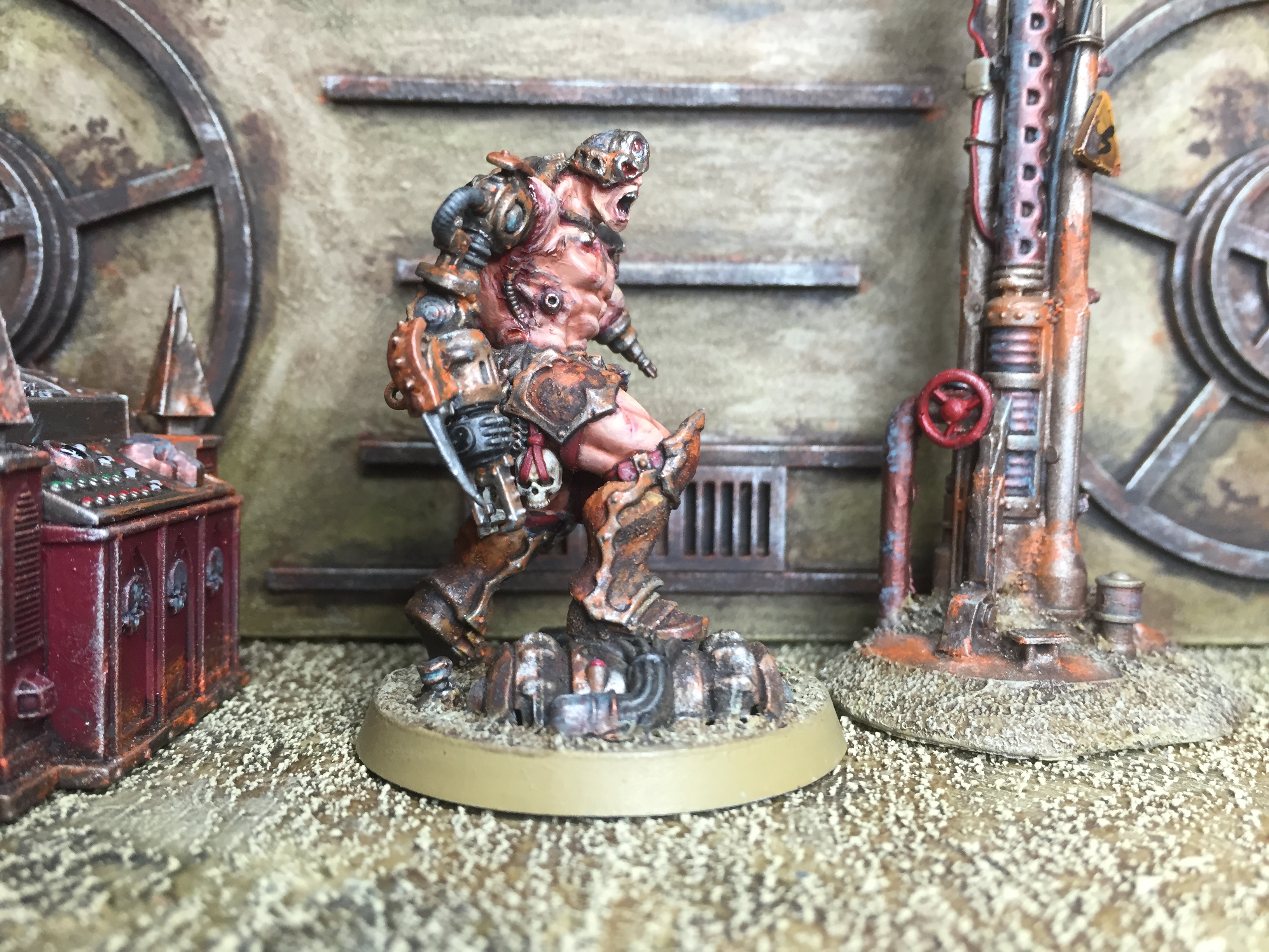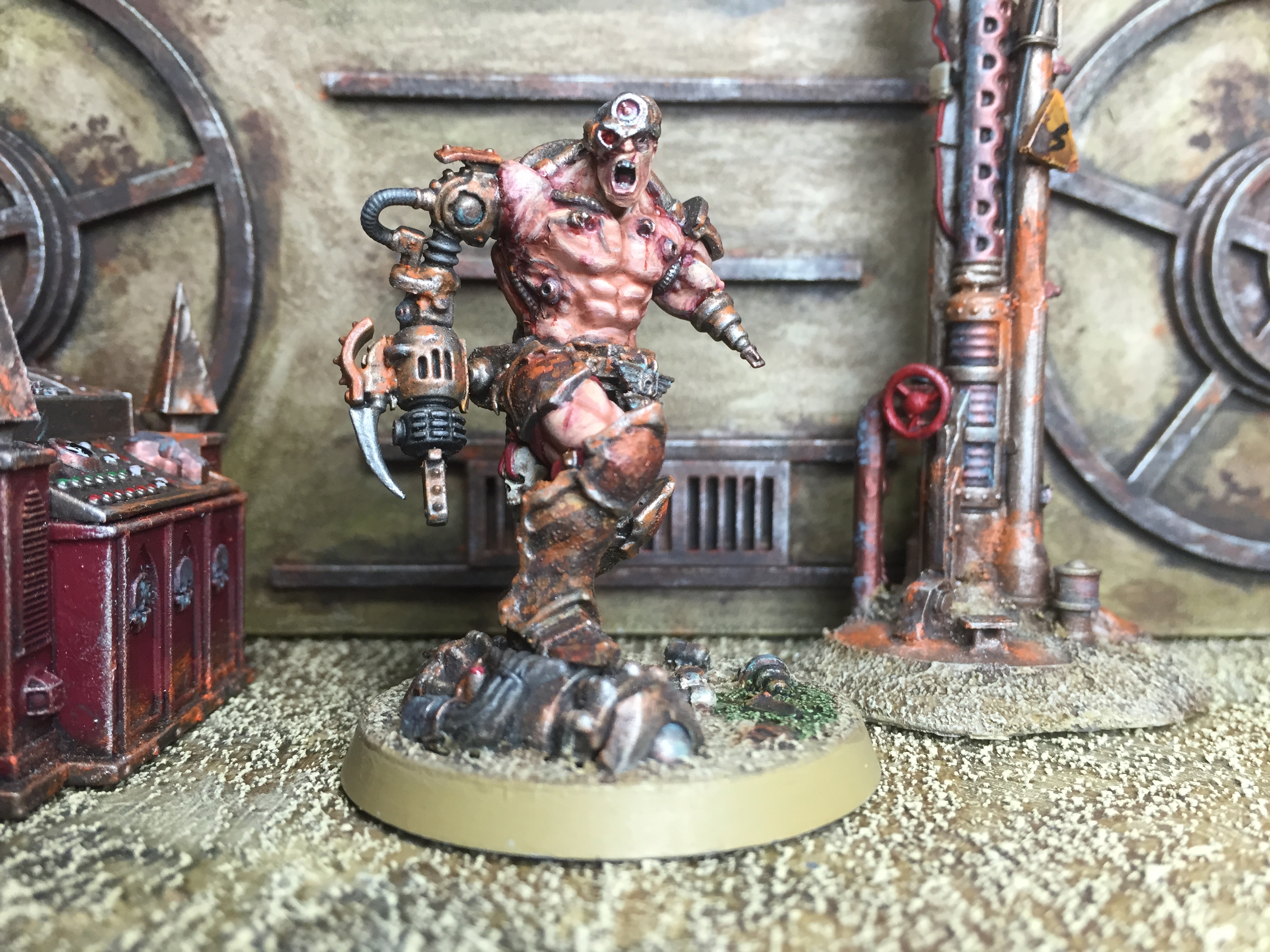 So… I’ve been pondering what to work on for my return, and (as you can imagine) I have a number of options. For starters, I have the Silver Tower game to sort out, plus several lovely Kickstarters that shipped recently. Also, I want to expand on the techno-barbarians, I have some Frostgrave creatures to sort out, and I have a number of small Confrontation collections to tackle as well… Such decisions! In the end, I decided to finish up my pit slave conversion, just to get my eye in, so to speak. He’s based on the AoS Slaughter Priest, and we last saw him in this state: