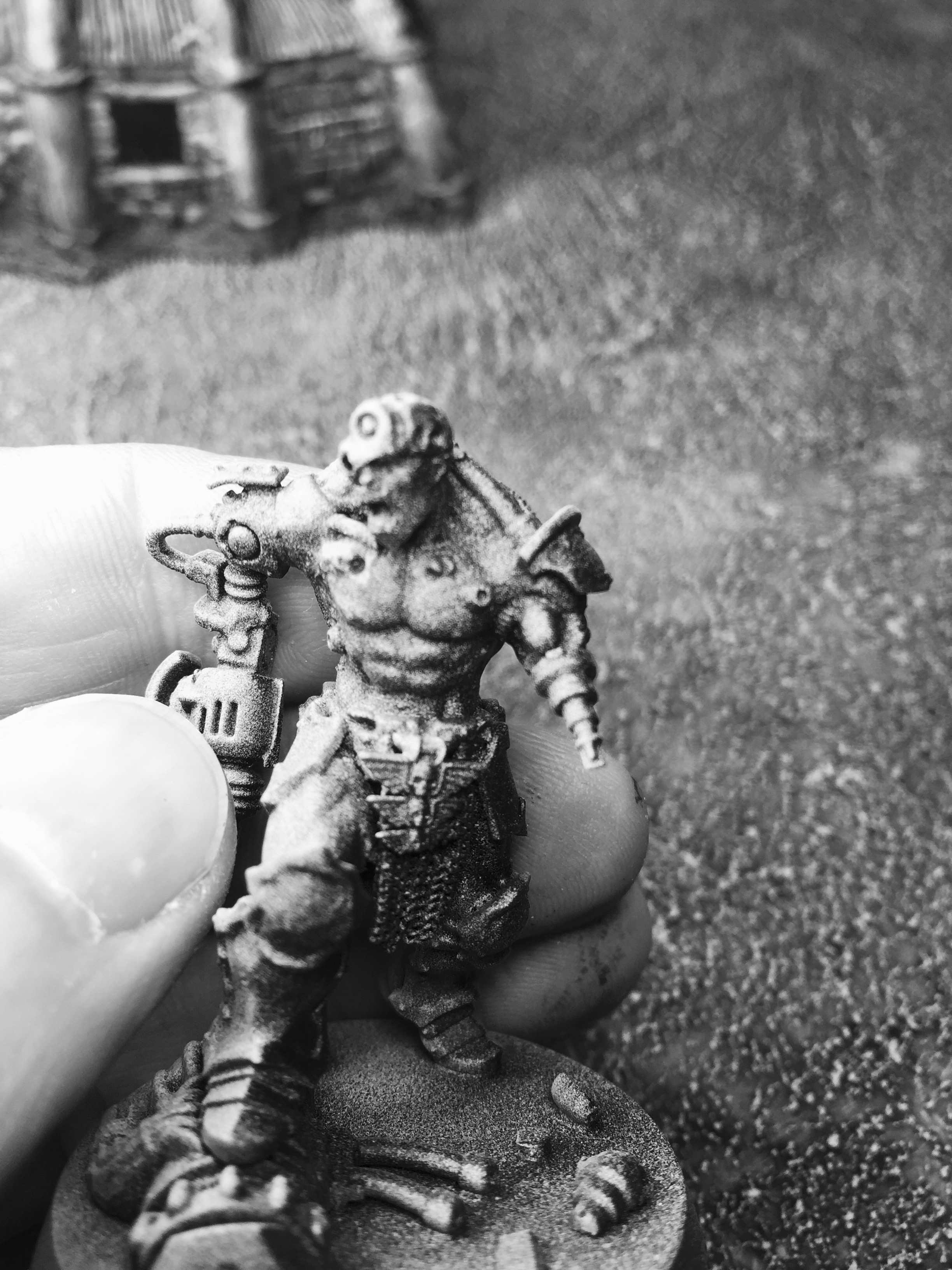 Hello folks – just like Arnie, I’m back! Yey!! Man… I can’t believe it has been almost 2 months since I posted my completed Techno-Barbarian village – our house has been upside down in all that time, making painting, modelling etc. practically impossible. I have really missed painting and blogging in that time, though luckily, I have been able to closely follow a number of excellent blogs out in the Noosphere, (yes… you know who you are), and so I have been getting my kicks second hand. I have also managed to get in a fair few games of Frostgrave these last months, (my techno-barbarian warband is now up to level 16!), but nothing to really satisfy my creative urges.