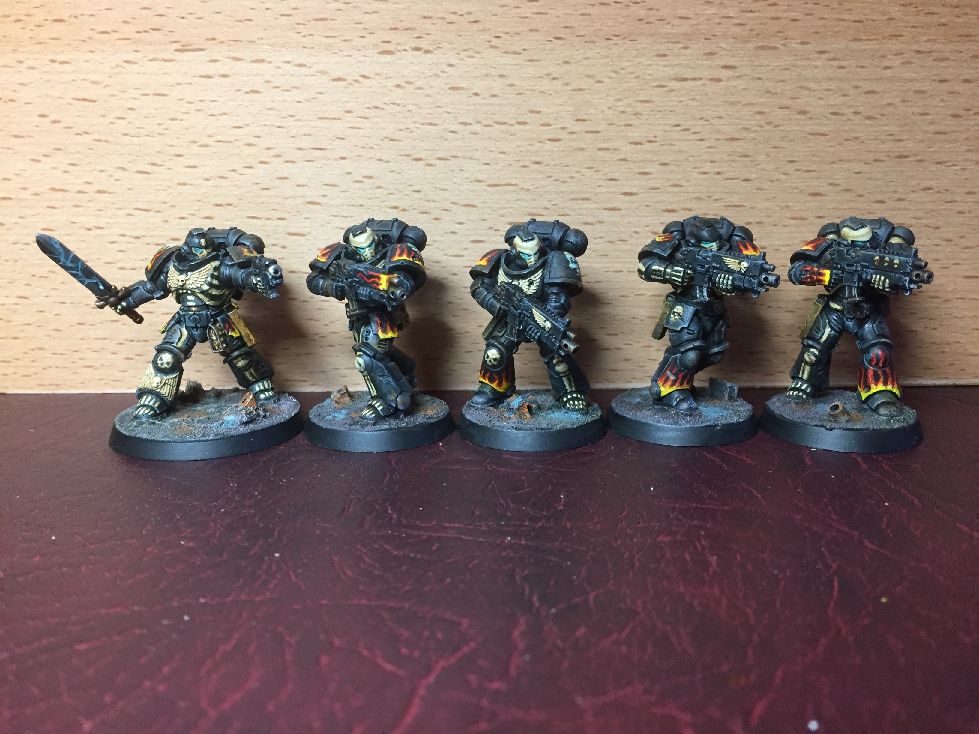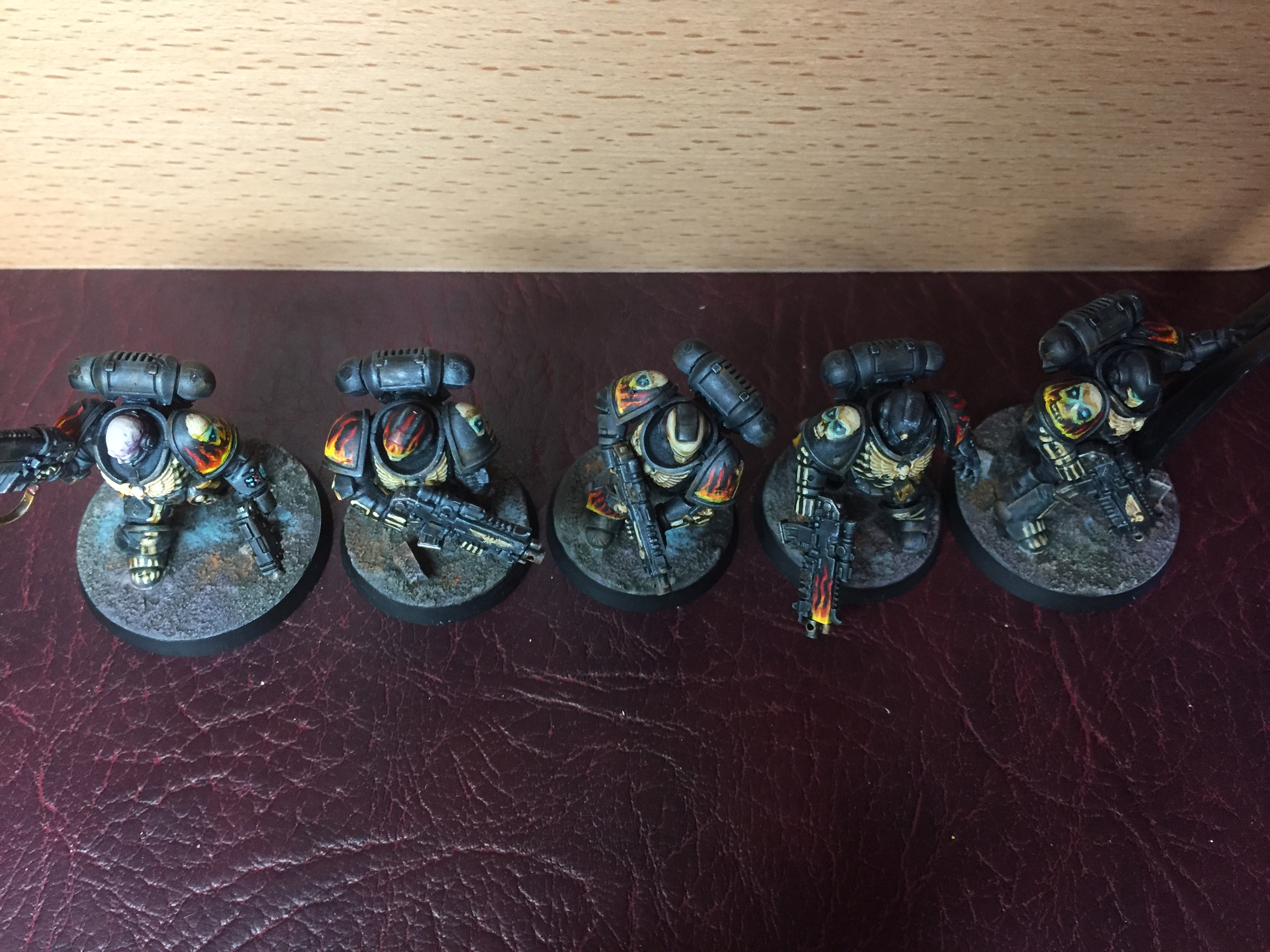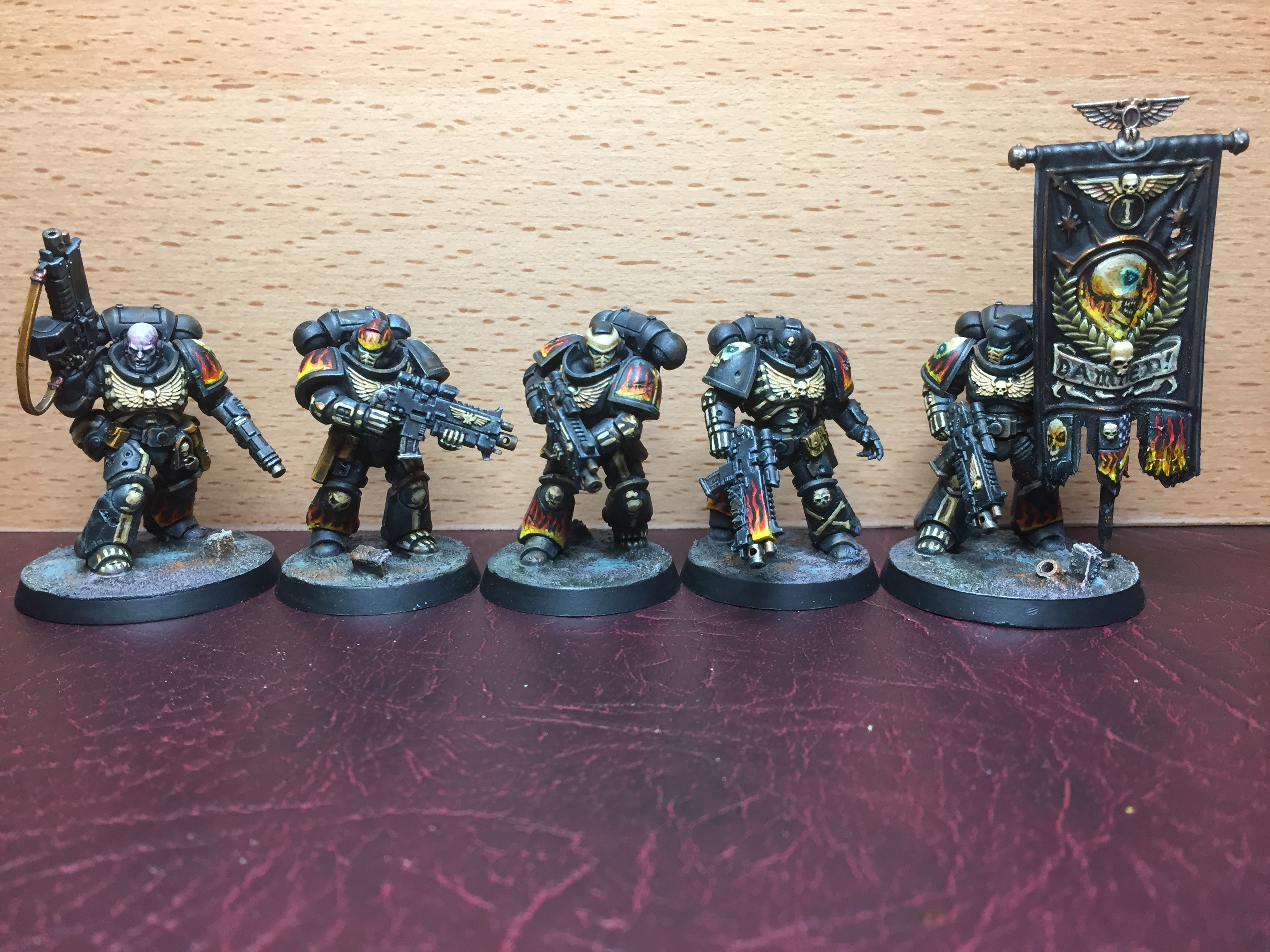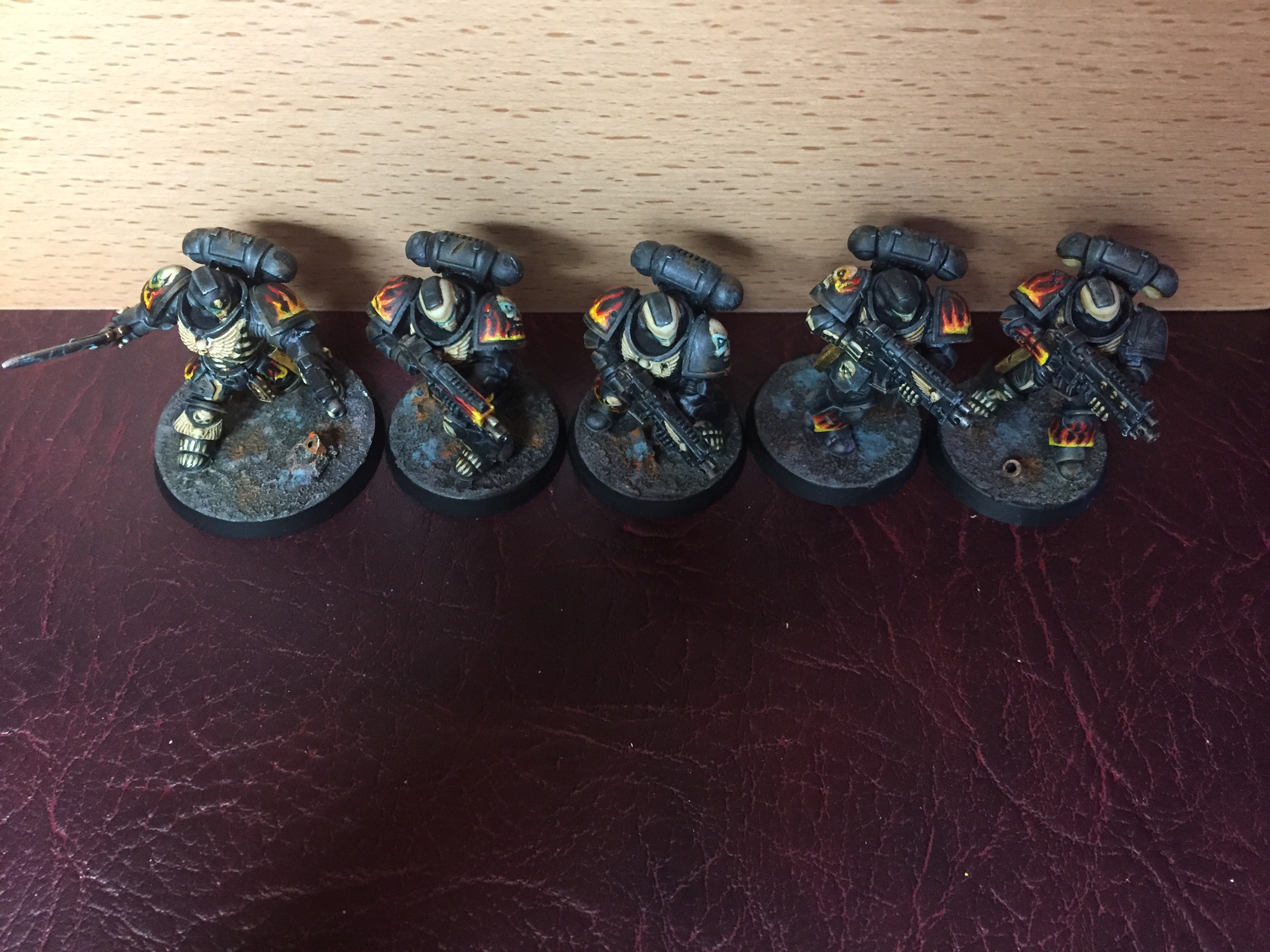 These are all the Primaris troops that I accumulated through Warhammer Conquest, and all are destined for my Primaris Legion of the Damned, ready for the new edition of 40k. Since finishing all the prep, I also managed to get some proper painting time in & came up with this squad: