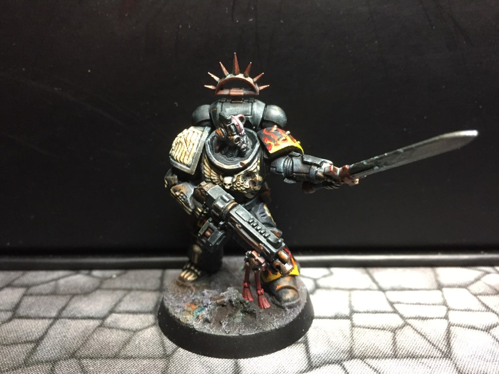 Paint-wise, these are all really straight forward, with the free & messy paint style that I enjoy. I undercoat black, and then do a zenith blast of white followed by a heavy white drybrush. Armour is contrast black, leather is contrast snakebite, flesh is just washed in crimson. I add detail in pure white, and then stain with sepia, or with yellow & red depending on whether it’s bone or flame, (the flames are done wet & wet blended together). I then highlight these up a little with either bone or yellow, before I grubby up the armour with rust, virdigris, typhus corrosion, etc. Any bare skin is just highlighted up with Rakarth Flesh, and given some blue or purple wash in the recesses and to add veins etc. Pretty messy and fun! I can always do a tutorial if anyone is particularly interested.