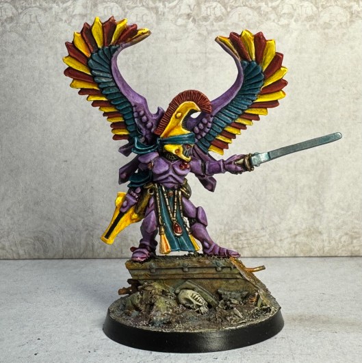 Firstly, just a re-show of the Craftworld Autarch – I’ve already shared this mini, but I reworked some of the details so I thought it worth reposting. I used Teal as the spot colour, and combined with the wings, this strongly ties this Autarch back to the Swooping hawk shrine, (but also hints of Dire Avenger and Howling Banshee in there with the weapon choice as well):