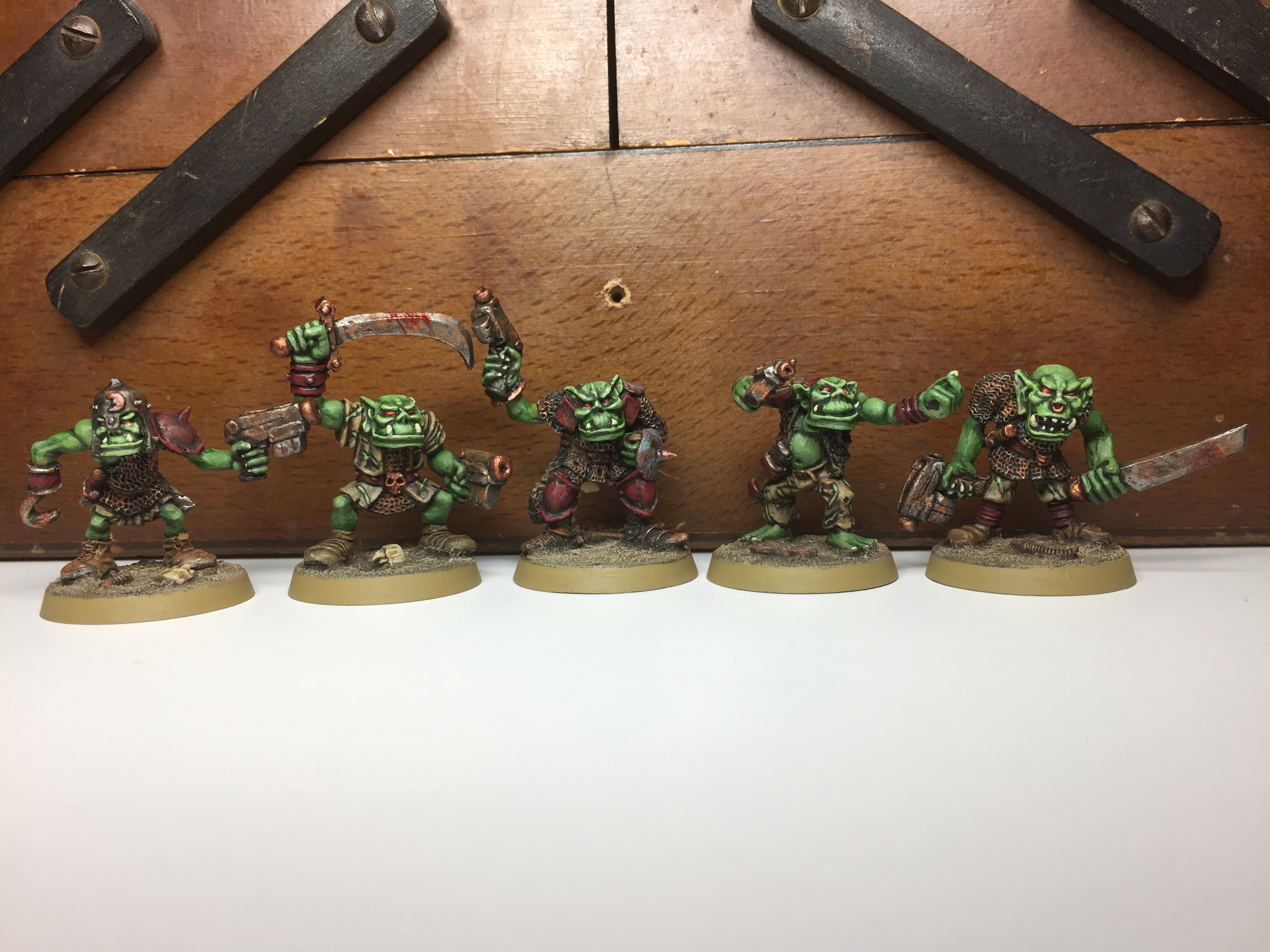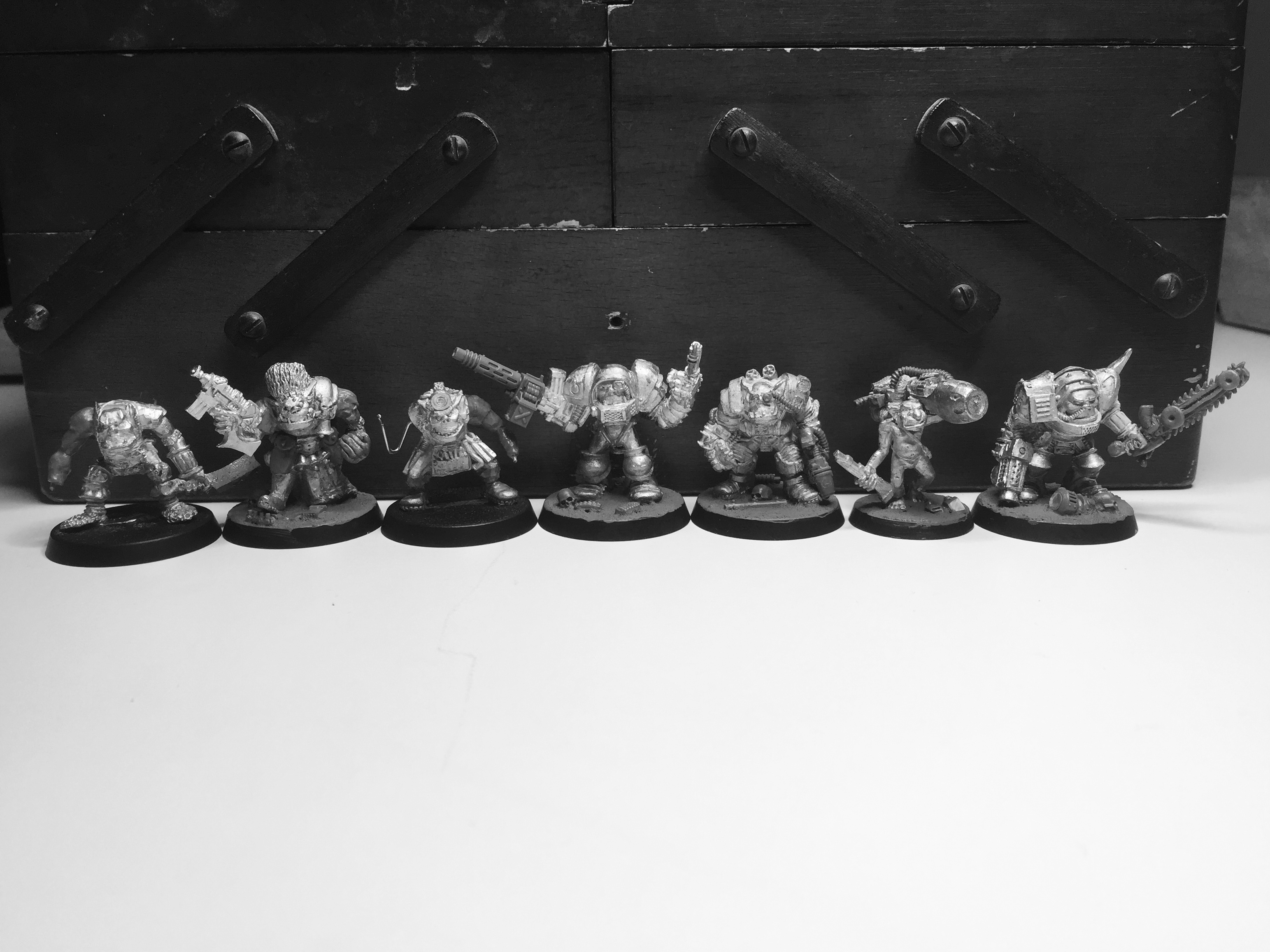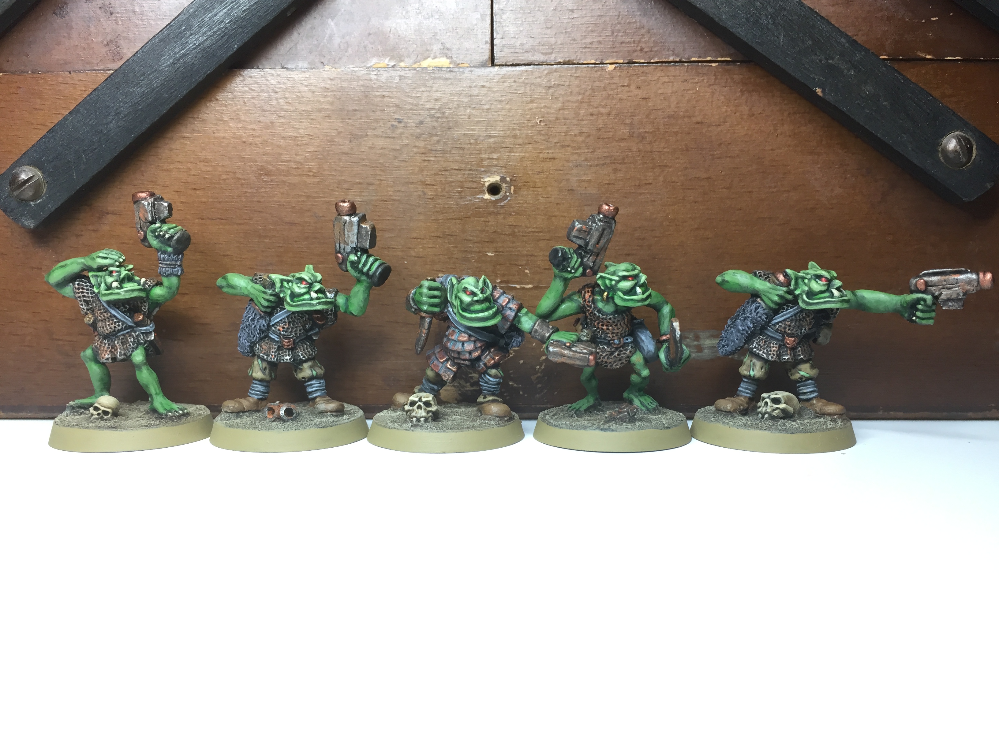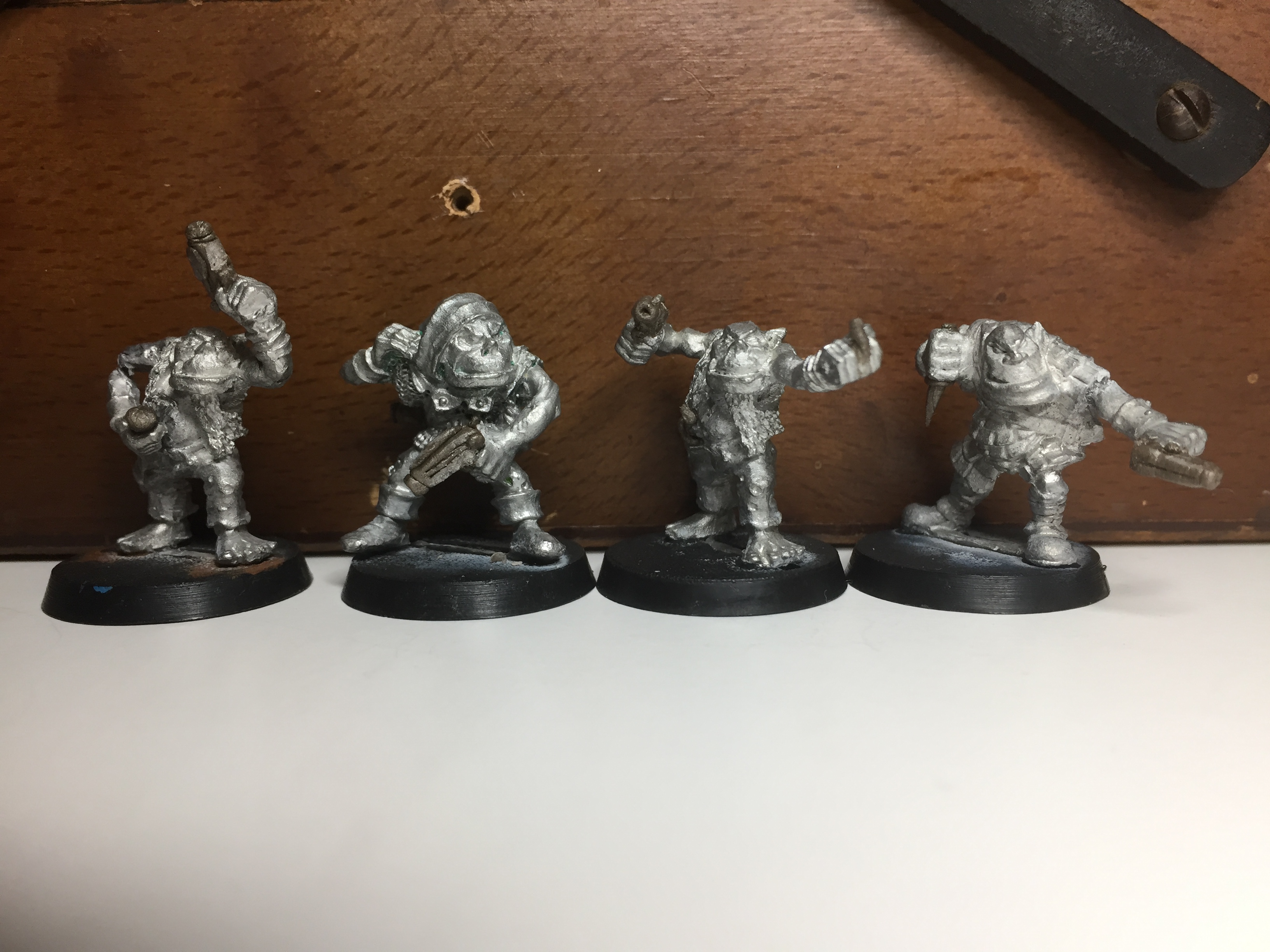 The Skumbos should be particularly good fun. In the fluff, the poor old Skumbos are described as being ‘lower caste’ Orcs, and they are lightly armed with Bolt Pistols & Swords… Unsurprisingly, there aren’t too many pistol/sword minis of that era, so I knew I needed to think outside of the box for this little lot! I decided to play on the whole ‘lower caste’ thing, and picked up a few fantasy Orc Archers of the correct vintage. After a bit of chopping & some putty work, I ended up with these: