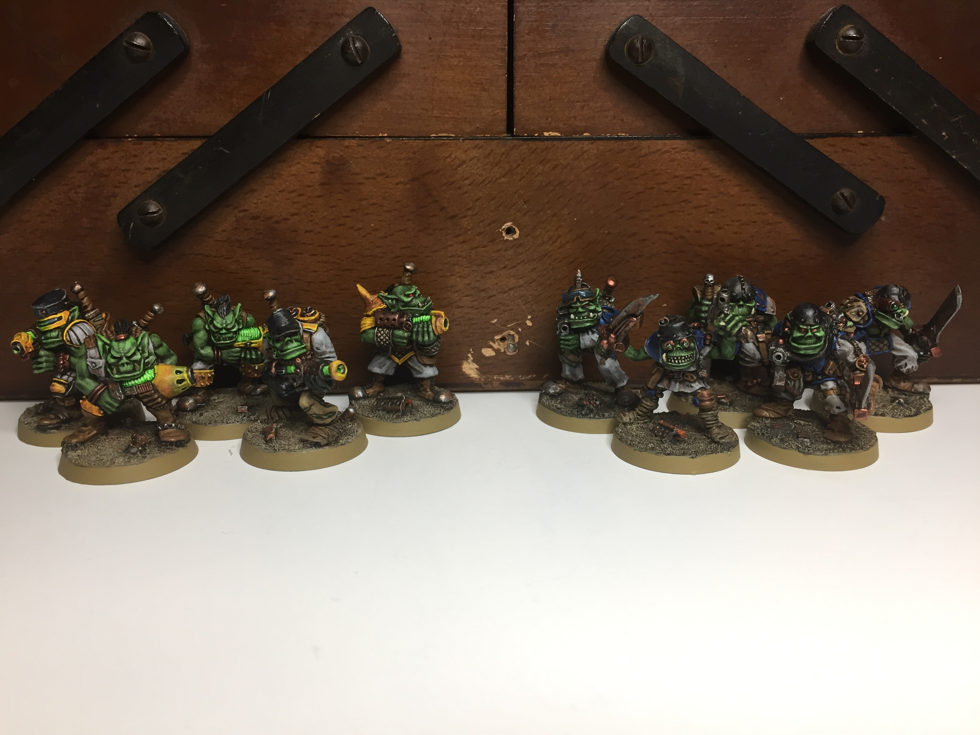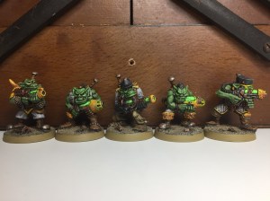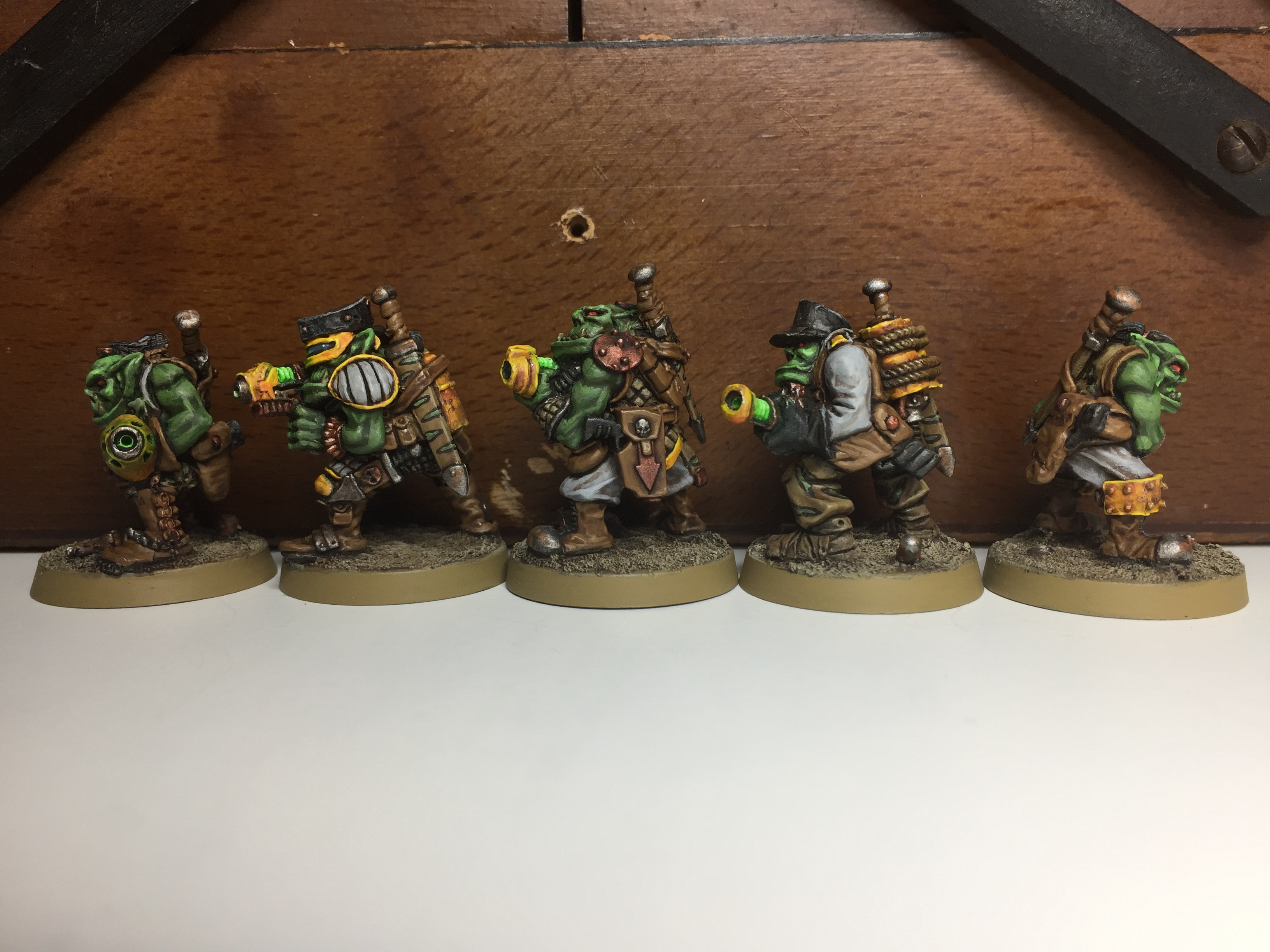 Ok, so I know some of these minis are actually packing flamers, and I know that I’m supposed to be doing this project with as much accuracy as possible, but the foot is going down and I’m reinterpreting the minis & calling them plasma… Because Orks… So there.