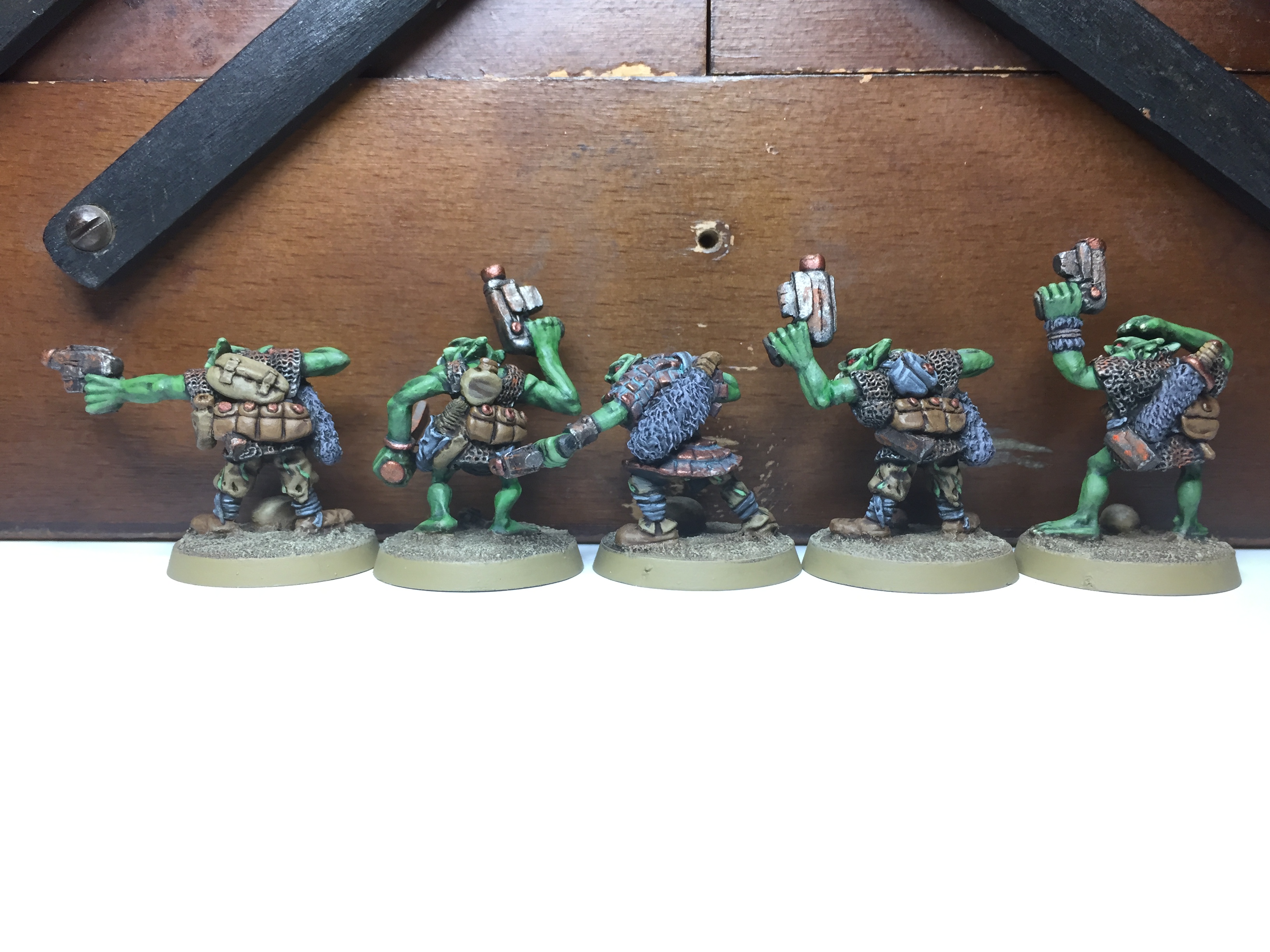 Whaddaya think? They aren’t finished yet, but hopefully you get the idea… I’m planning four of these per unit, plus a legit pistol/sword Space Ork to represent the unit leader, (who, bizarrely, gets Mesh armour). I need six such units, so maths tells me that I now need to finish these four, add another twenty, and round up six proper Space Orks to lead them… should keep me busy for a while! :-)