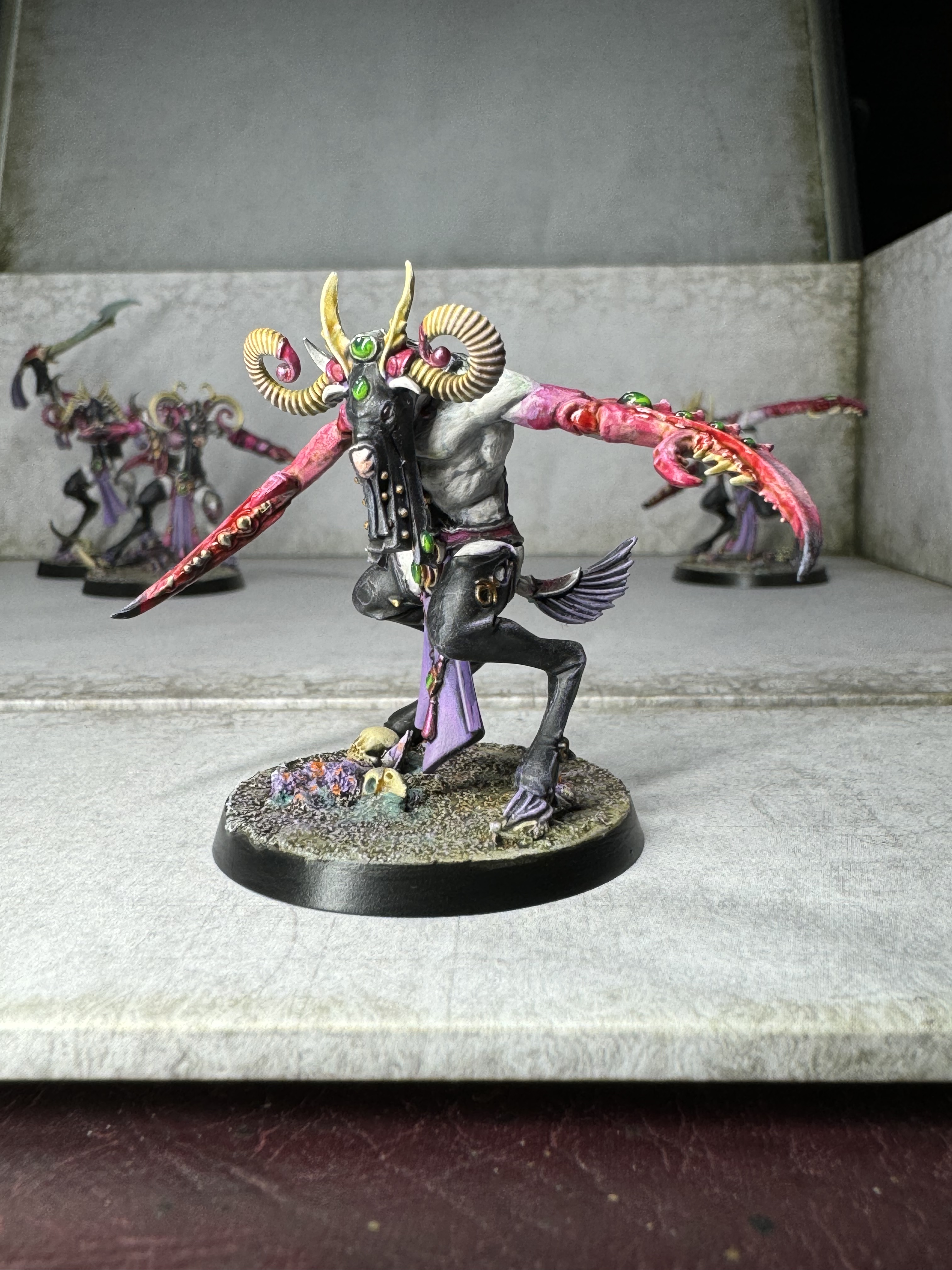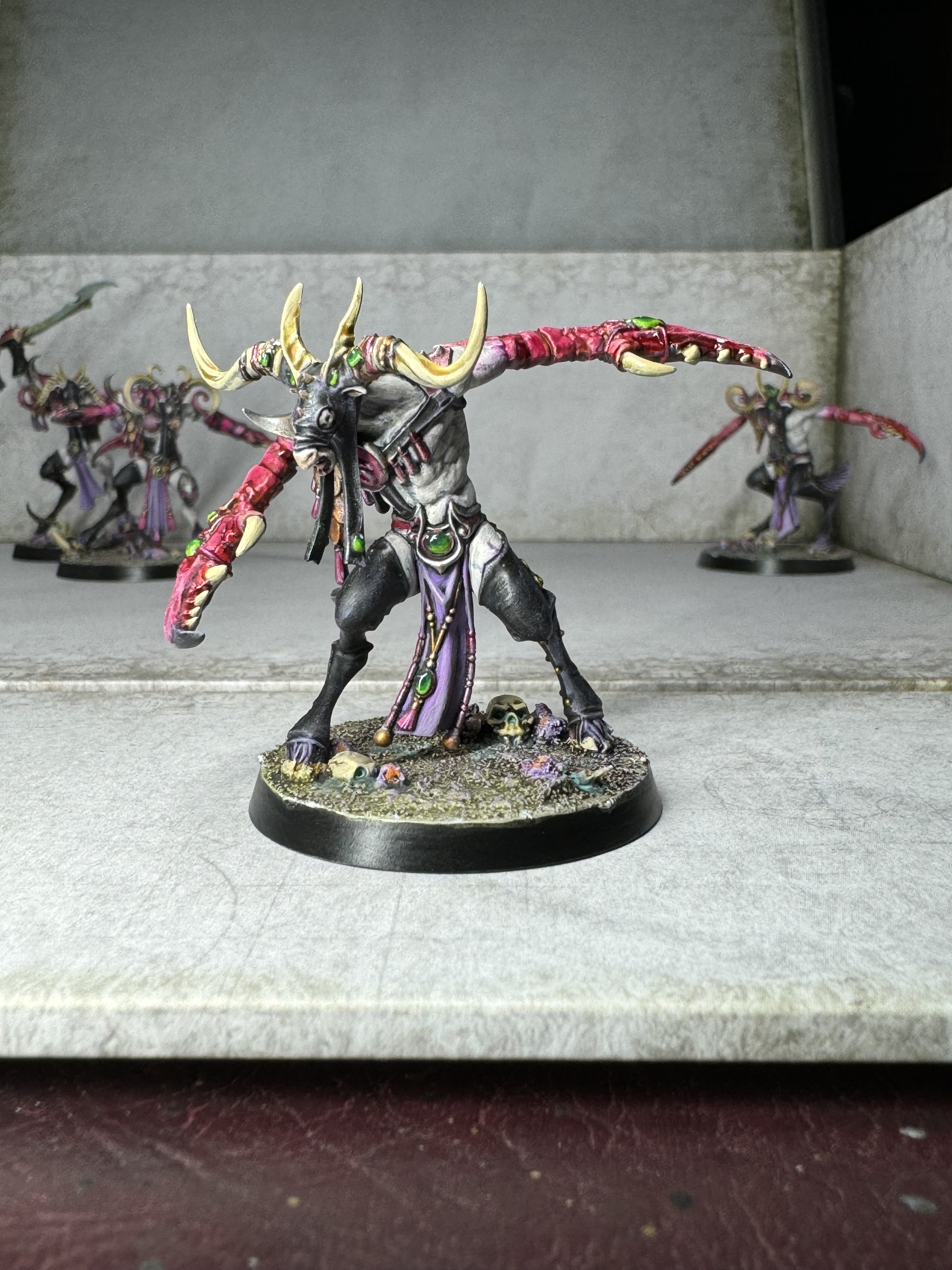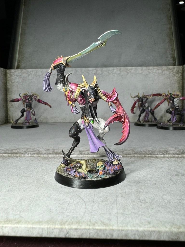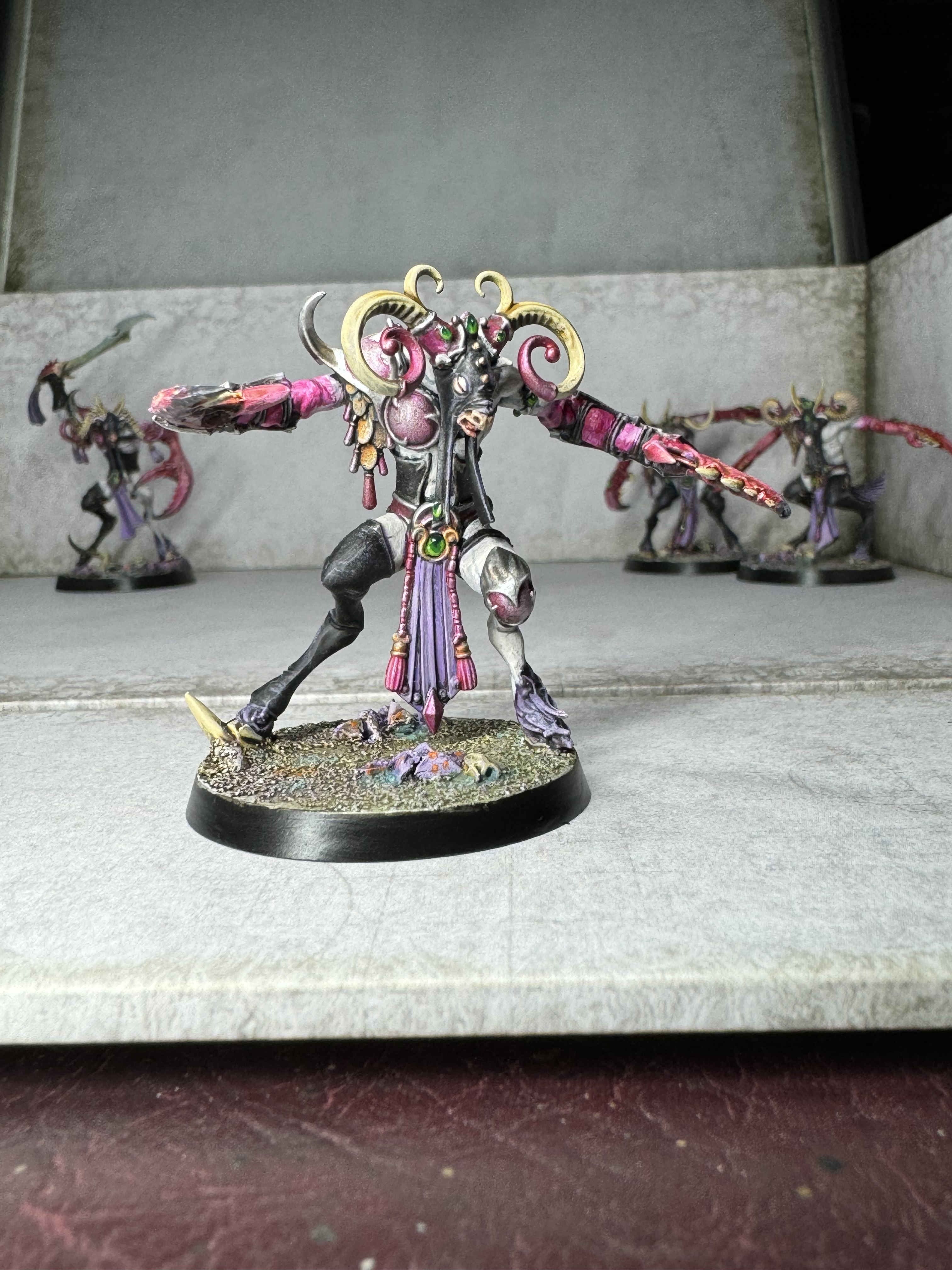 Firstly, just a re-show of the Craftworld Autarch – I’ve already shared this mini, but I reworked some of the details so I thought it worth reposting. I used Teal as the spot colour, and combined with the wings, this strongly ties this Autarch back to the Swooping hawk shrine, (but also hints of Dire Avenger and Howling Banshee in there with the weapon choice as well):